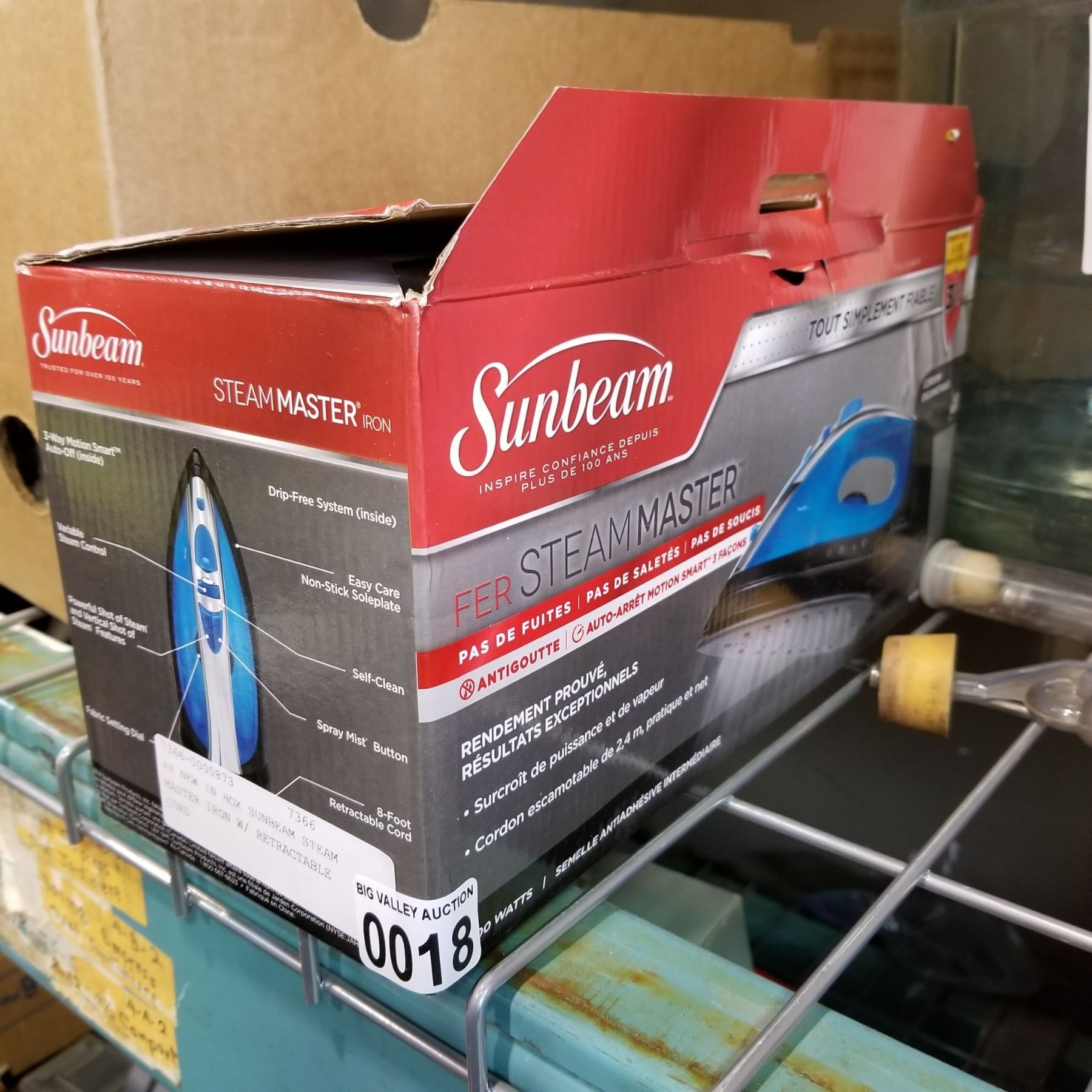 AS NEW IN BOX SUNBEAM STEAM MASTER IRON W/ RETRACTABLE CORD