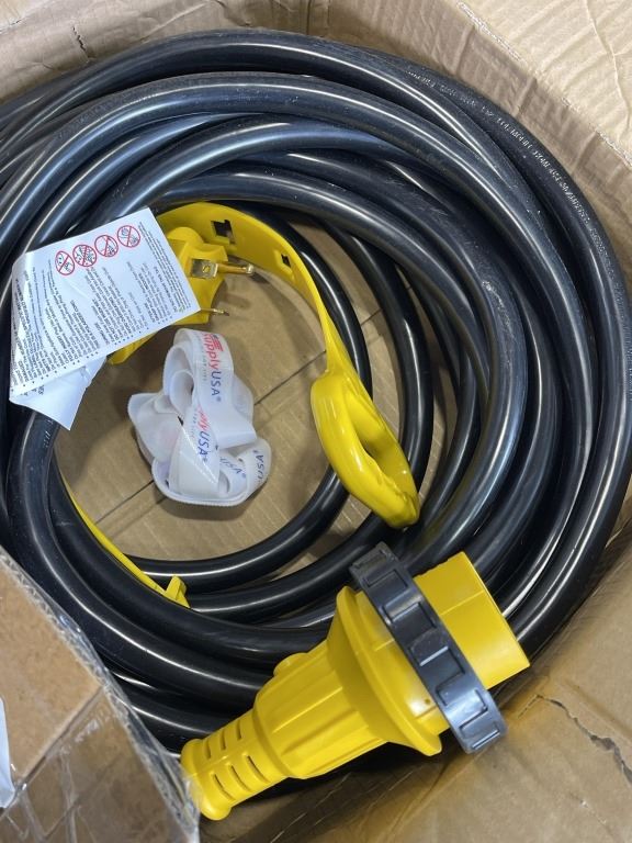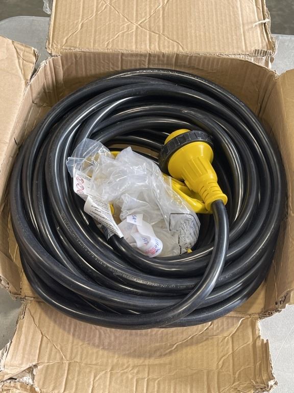 AS NEW INDOOR/OUTDOOR 3 WIRED GROUNDED 30AMP RV ETENSION CORD HEAVY DUTY CORD WITH HANDLES