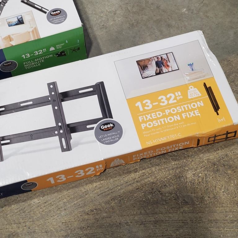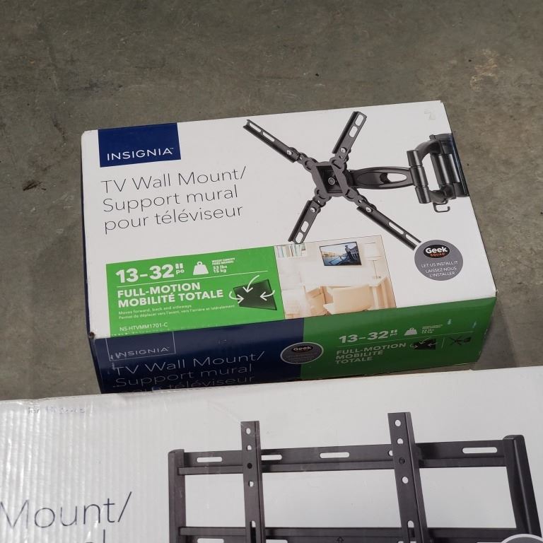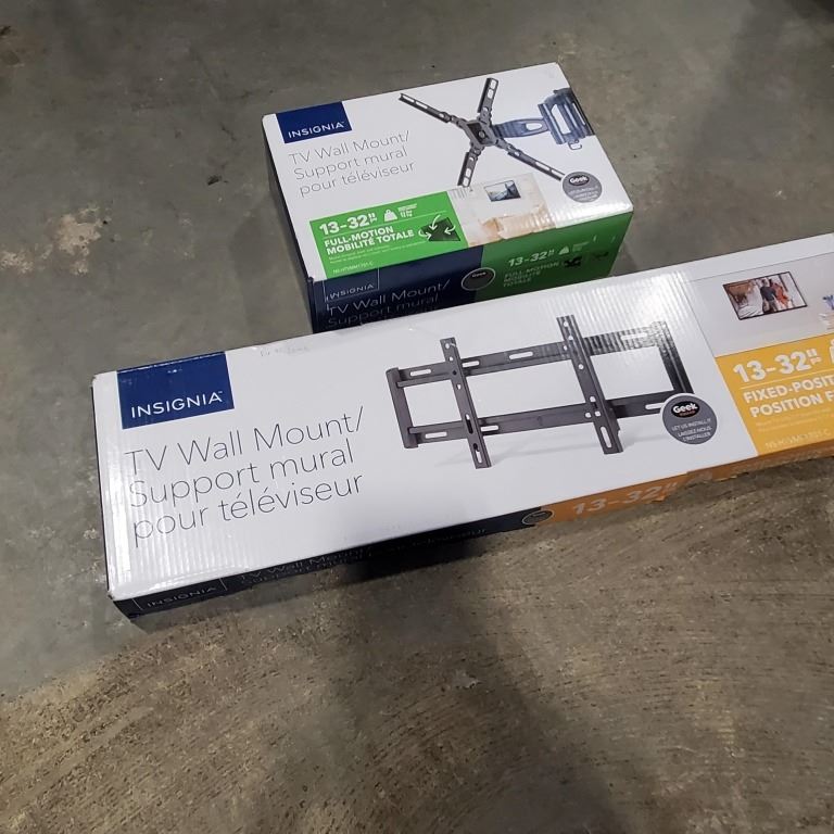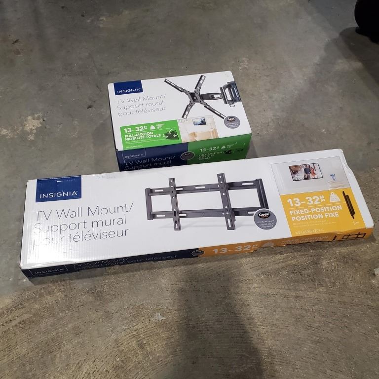 AS NEW INSIGNIA 13"-32" FULL MOTION AND 13"-32" FIXED TV WALL MOUNTS - RETAIL $99