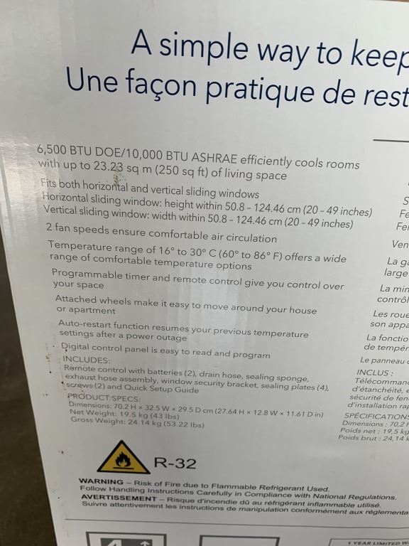 AS NEW INSIGNIA 3 IN 1 10,000 BTU AIR CONDITIONER WITH DEHUMIDIFIER,MODEL NS-AC10PWH5-C RETAIL $499