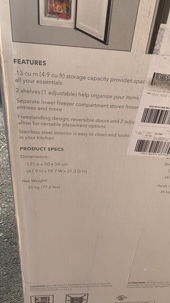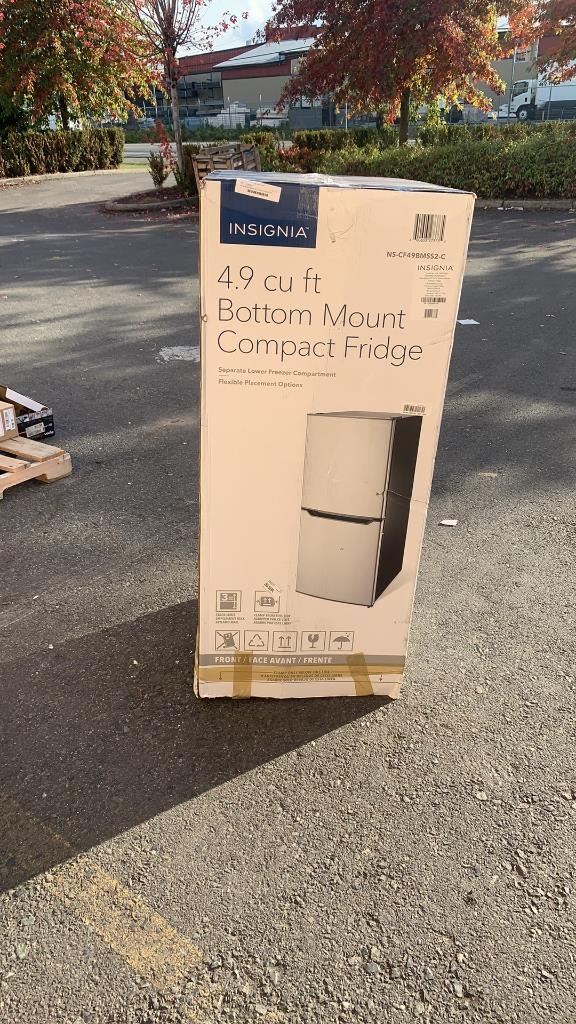 AS NEW INSIGNIA 4.9CU FT BOTTOM MOUNT COMPACT FRIDGE TESTED AND WORKING, RETAIL $399