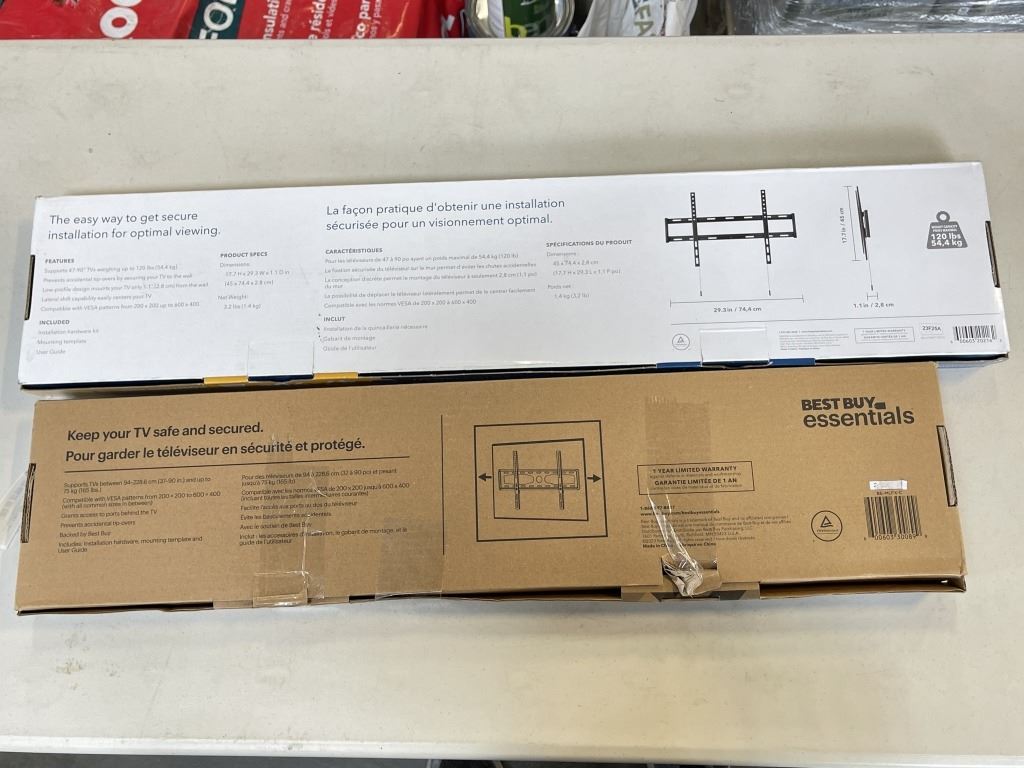 AS NEW INSIGNIA 47-90 INCH FIXED AND 37-90 INCH FIXED TV WALL MOUNTS