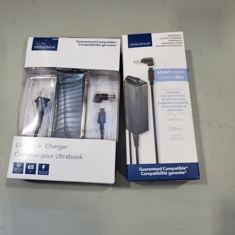 AS NEW INSIGNIA 65 WATT UNIVERSAL LAPTOP CHARGER AND 65 WATT ULTRABOOK CHARGER