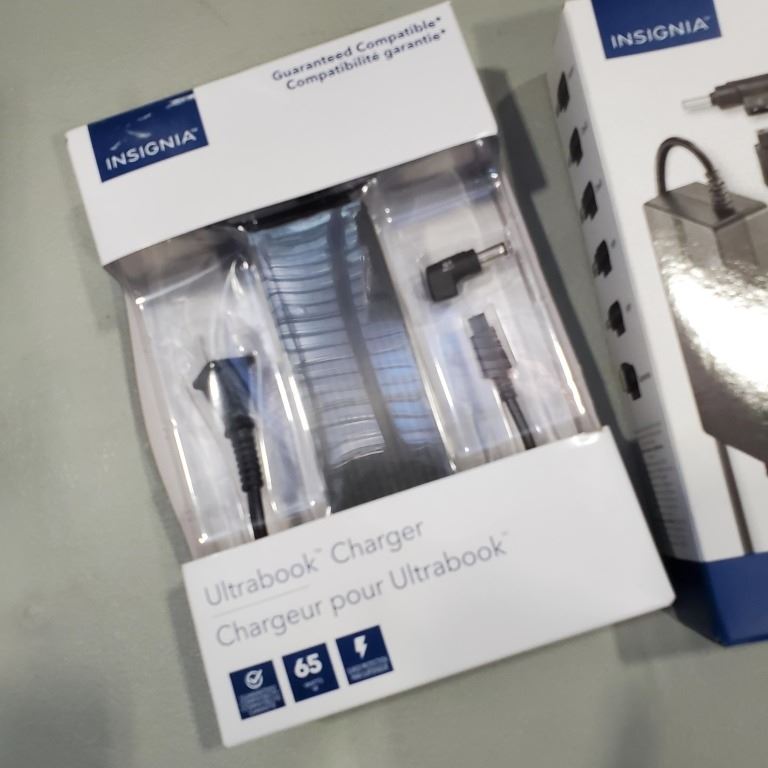 AS NEW INSIGNIA 90 WATT UNIVERSAL LAPTOP CHARGER AND 65 WATT ULTRABOOK CHARGER