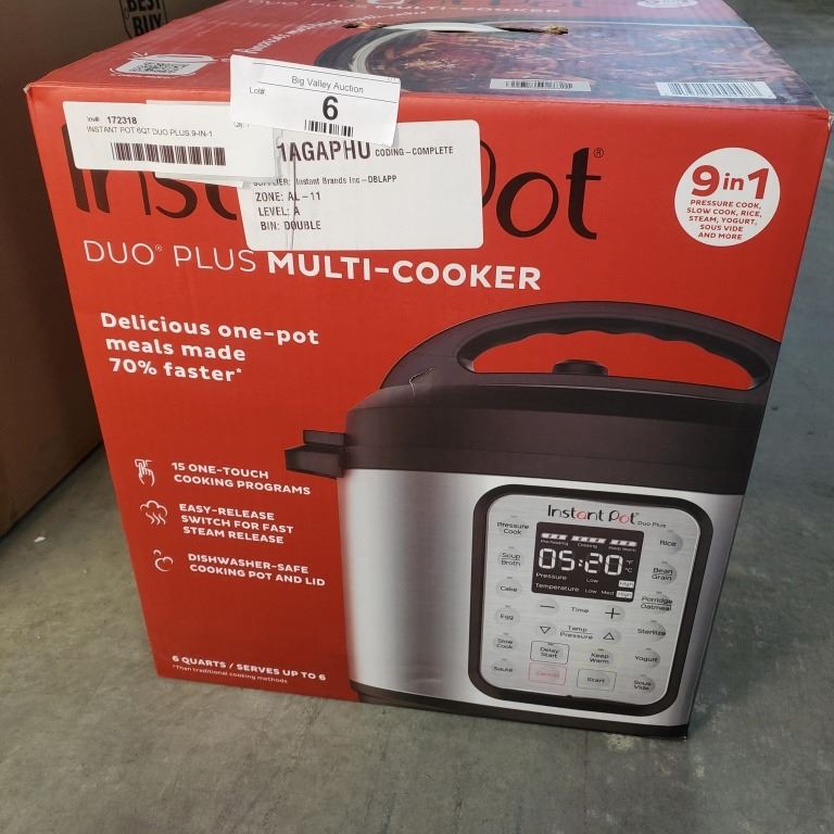 AS NEW INSTANT POT 6QT DUO PLUS 9-IN-1 ELECTRIC PRESSURE COOKER - TESTED WORKING, RETAIL $159