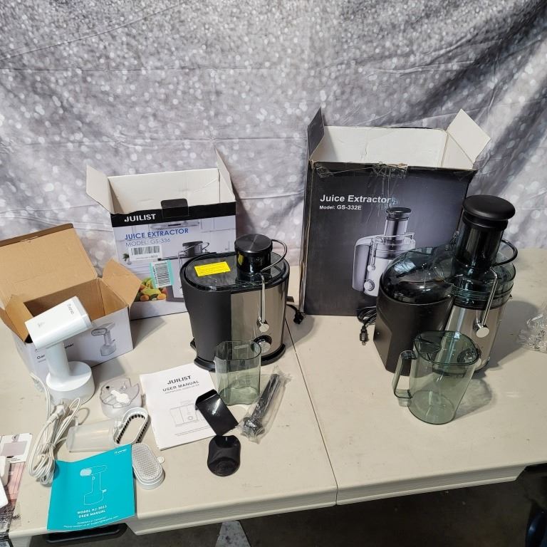 AS NEW JUILIST JUICE EXTRACTOR, FOHERE JUICE EXTRACTOR AND GARMENT STEAMERS ALL TESTED AND WORKING