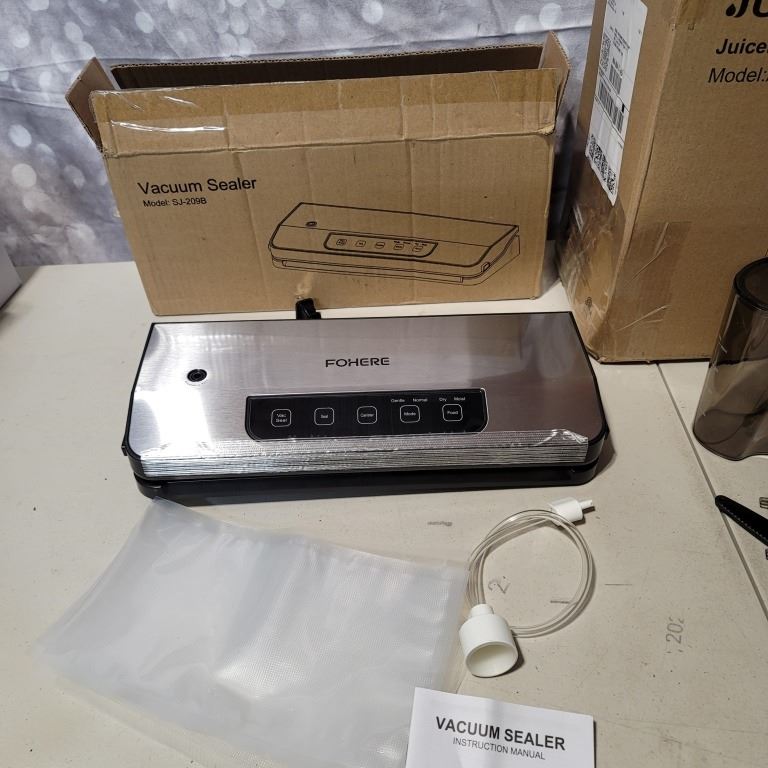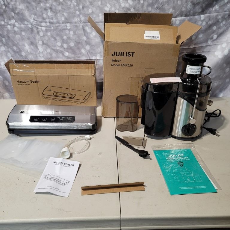 AS NEW JUILIST JUICER AND FOHERE VACUUM SEALER BOTH TESTED AND WORKING RETAIL $375