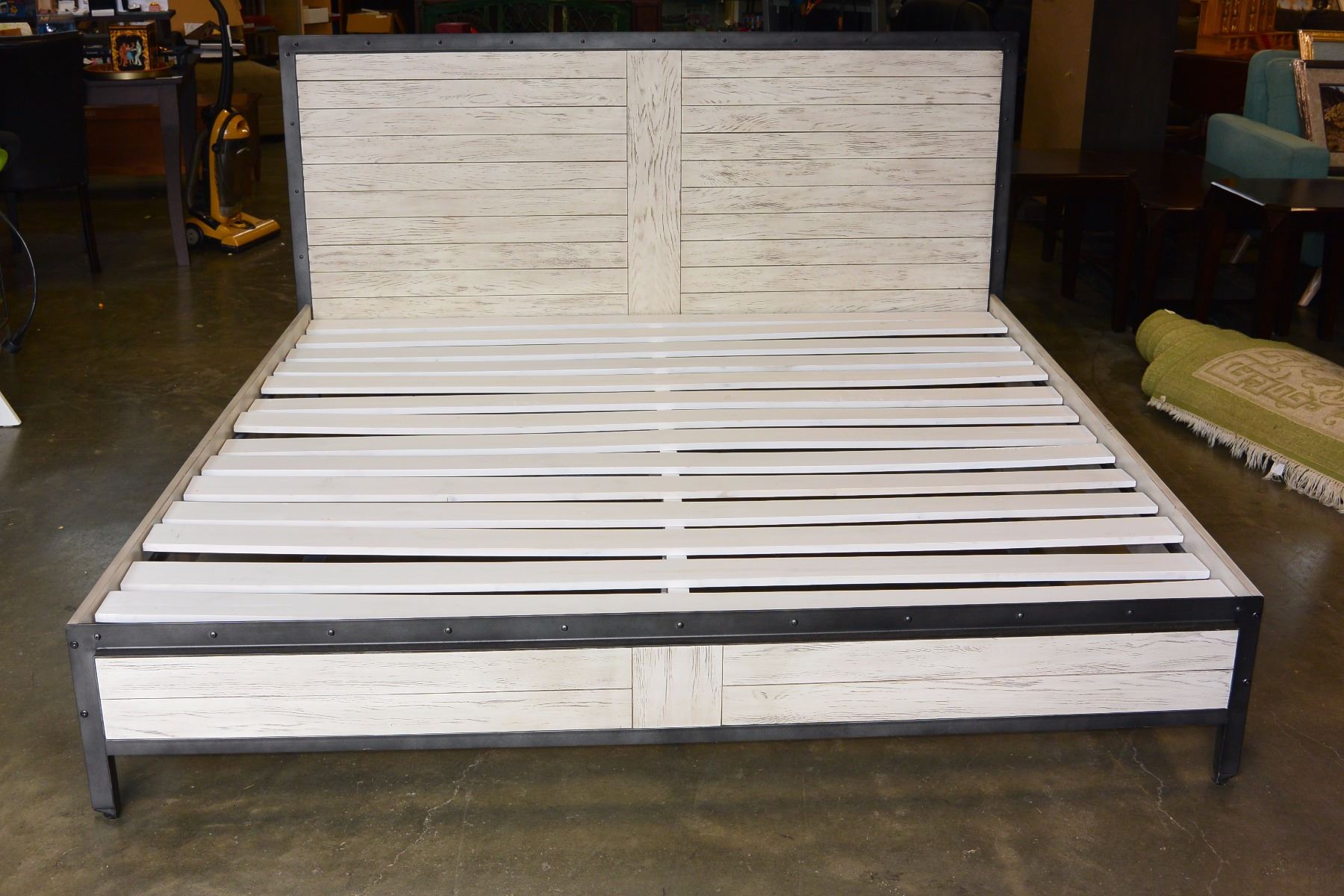 AS NEW KINGSIZE INDUSTRIAL MODERN PLATFORM HOME ELEGANCE BEDFRAM RETAIL $1899