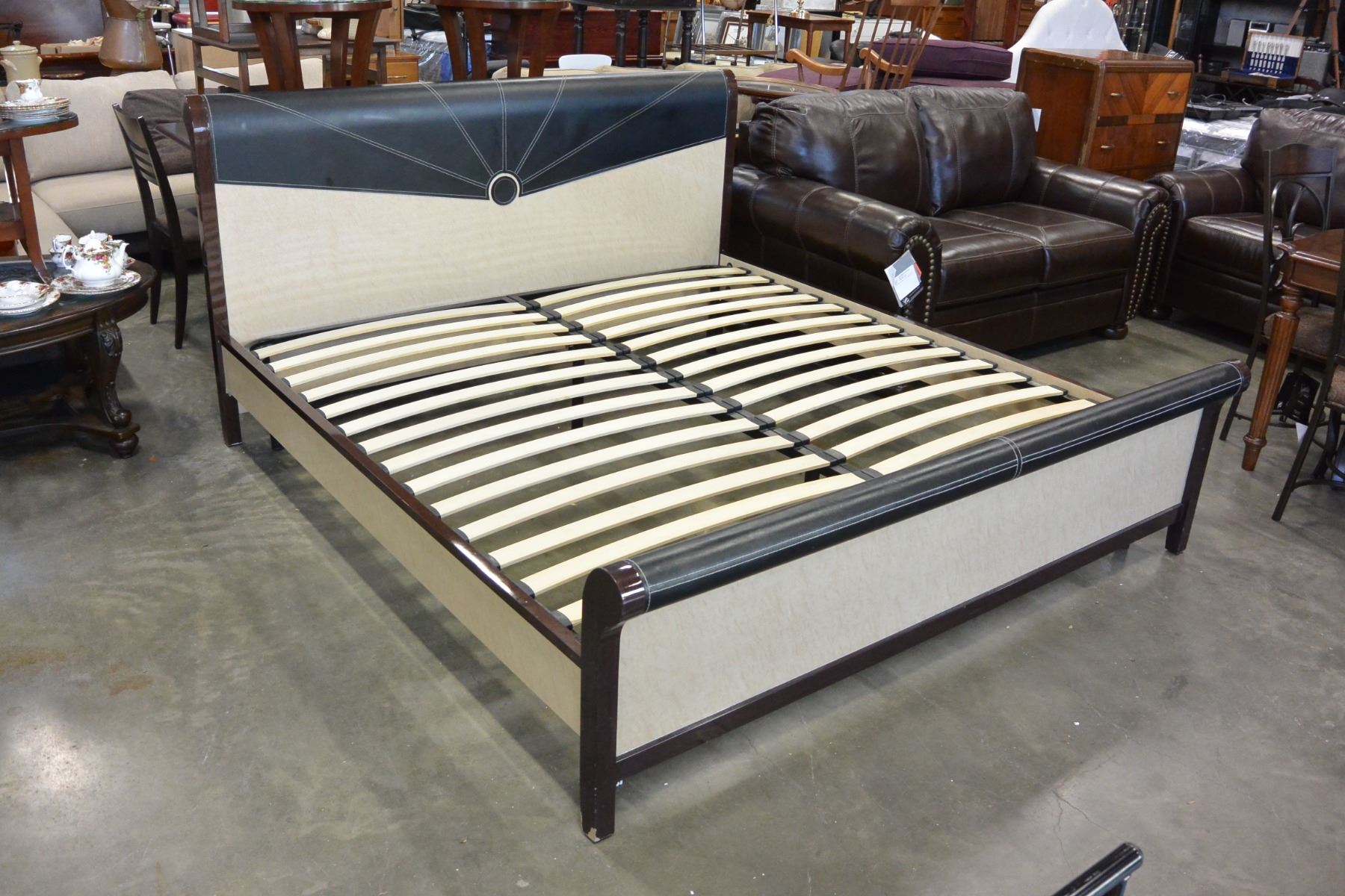 AS NEW KINGSIZE LEATHER PLATFORM BEDFRAME