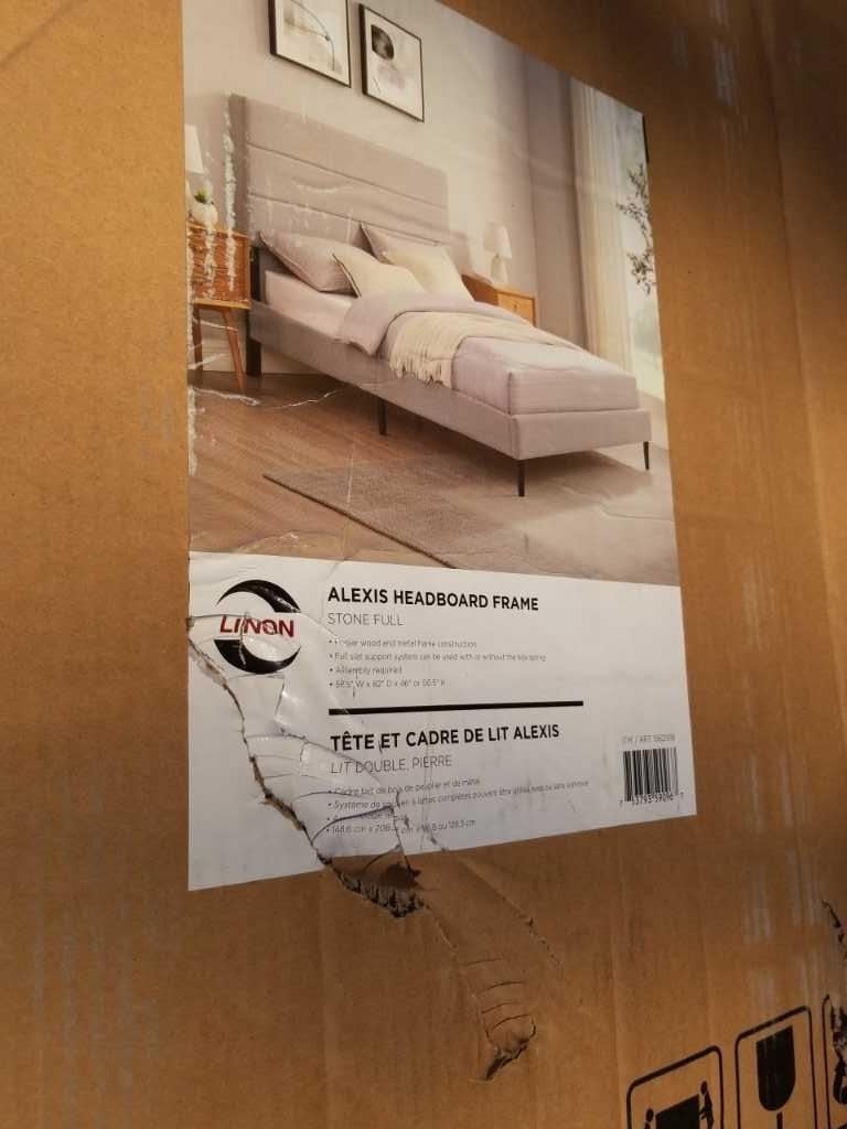 AS NEW LINON LIORE FULL SIZE STONE BED FRAME, RETAIL $399