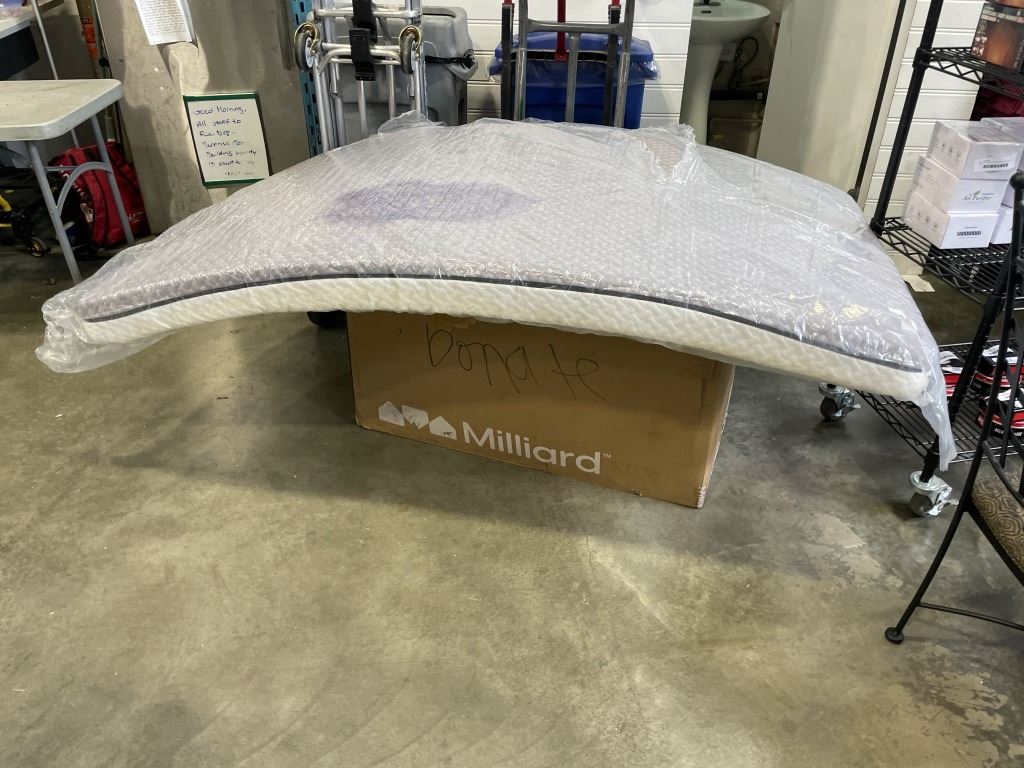 AS NEW MILLIARD METAL BEDFRAME AND MEMORY FOAM MATTRESS