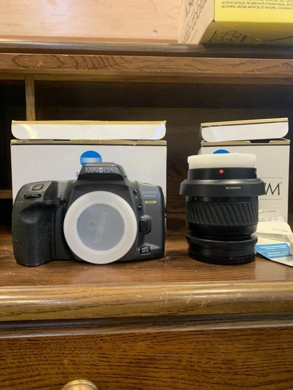 AS NEW MINOLTA CAMERA 500SL AND LENS ORIGINALLY $700