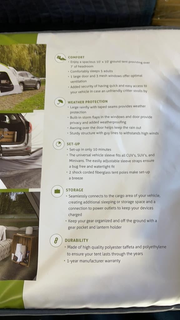 AS NEW NAPIER BACKROADZ SUV TENT MODEL 19100, RETAIL $295