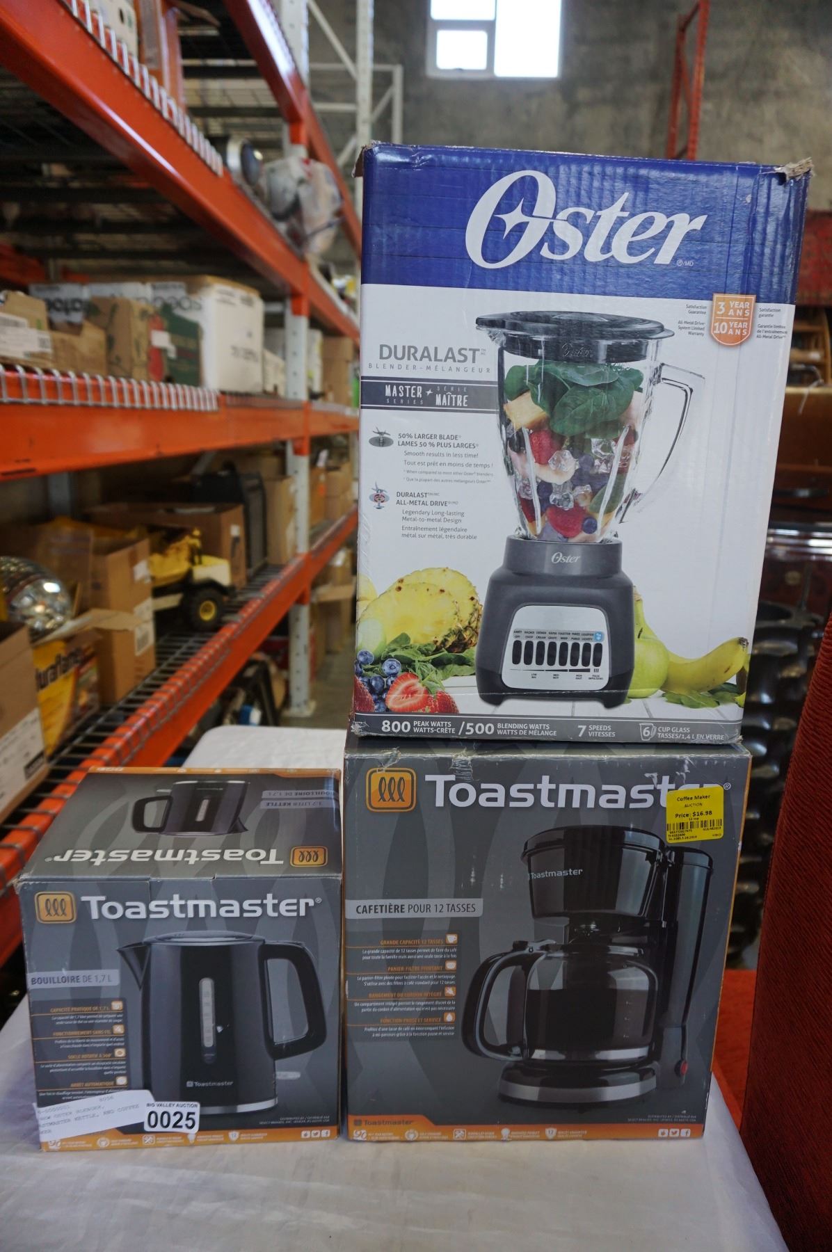 AS NEW OSTER BLENDER, TOASTMASTER KETTLE, AND COFFEE MAKER