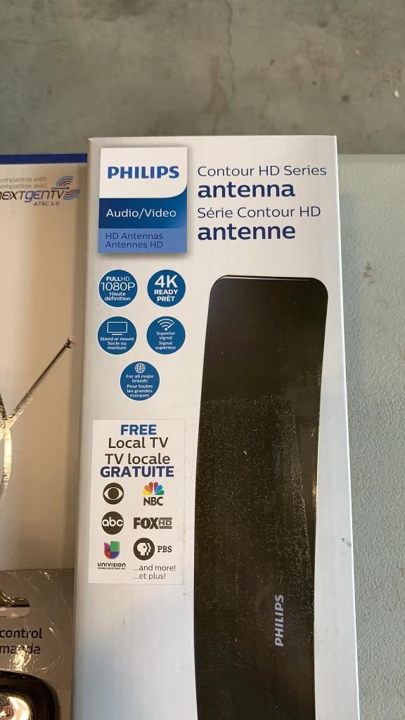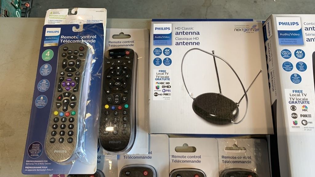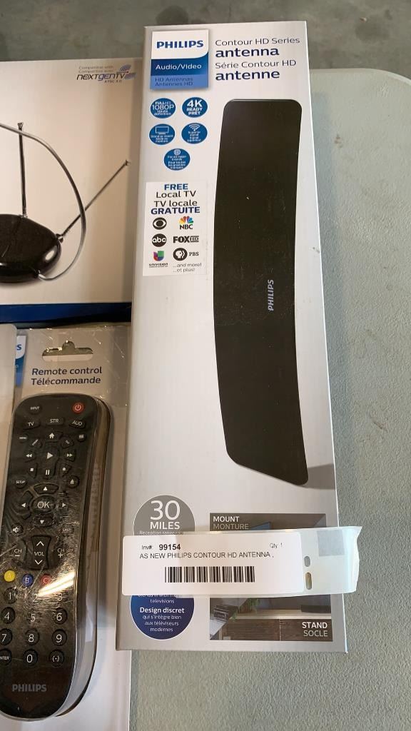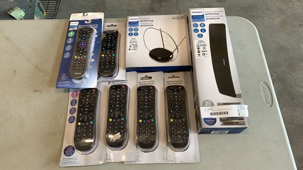 AS NEW PHILIPS CONTOUR HD ANTENNA , CLASSIC ANTENNA AND 6 UNIVERSAL REMOTE CONTROLS