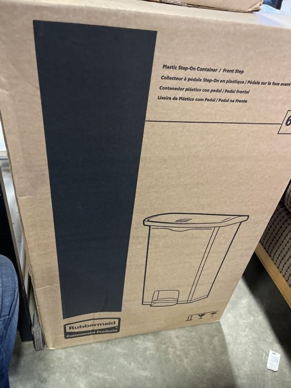 AS NEW RUBBERMAID STEP ON GARBAGE CAN