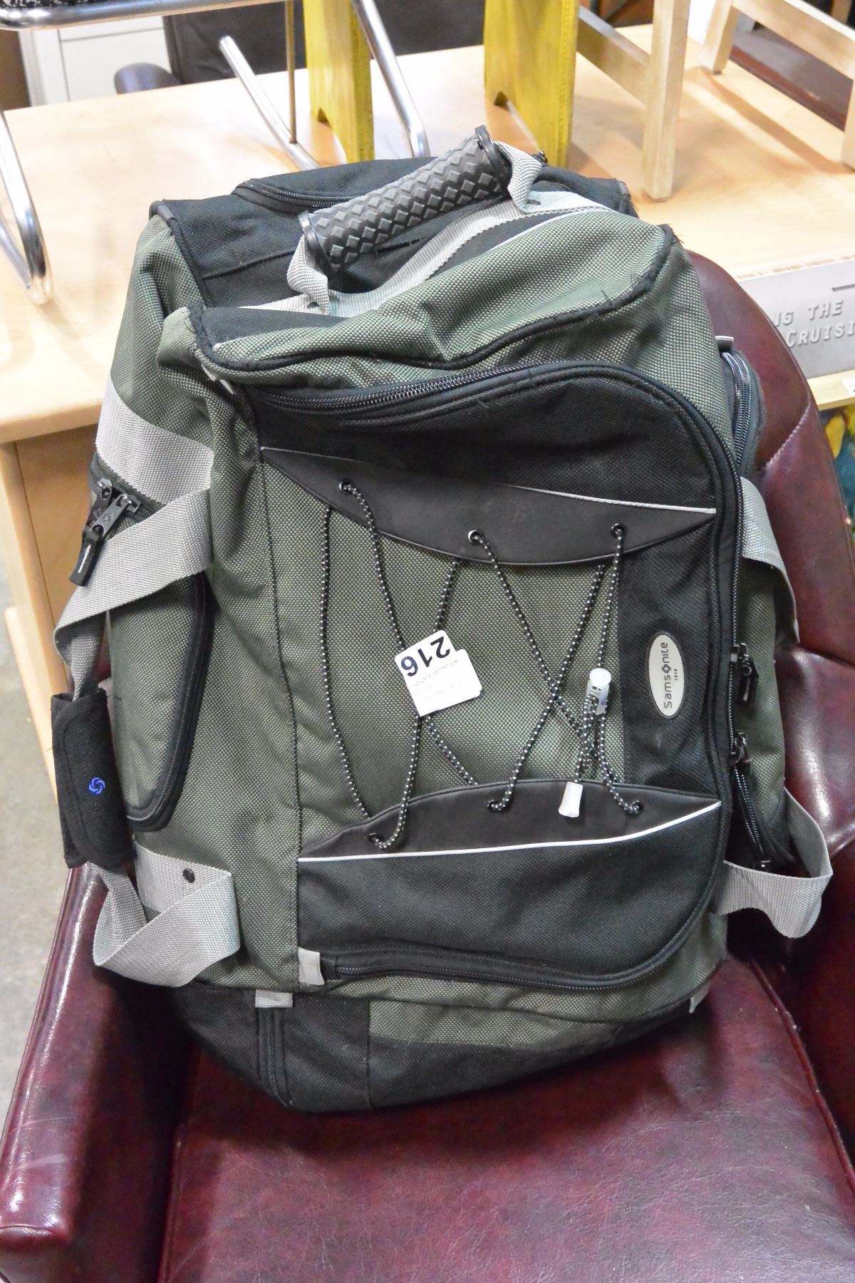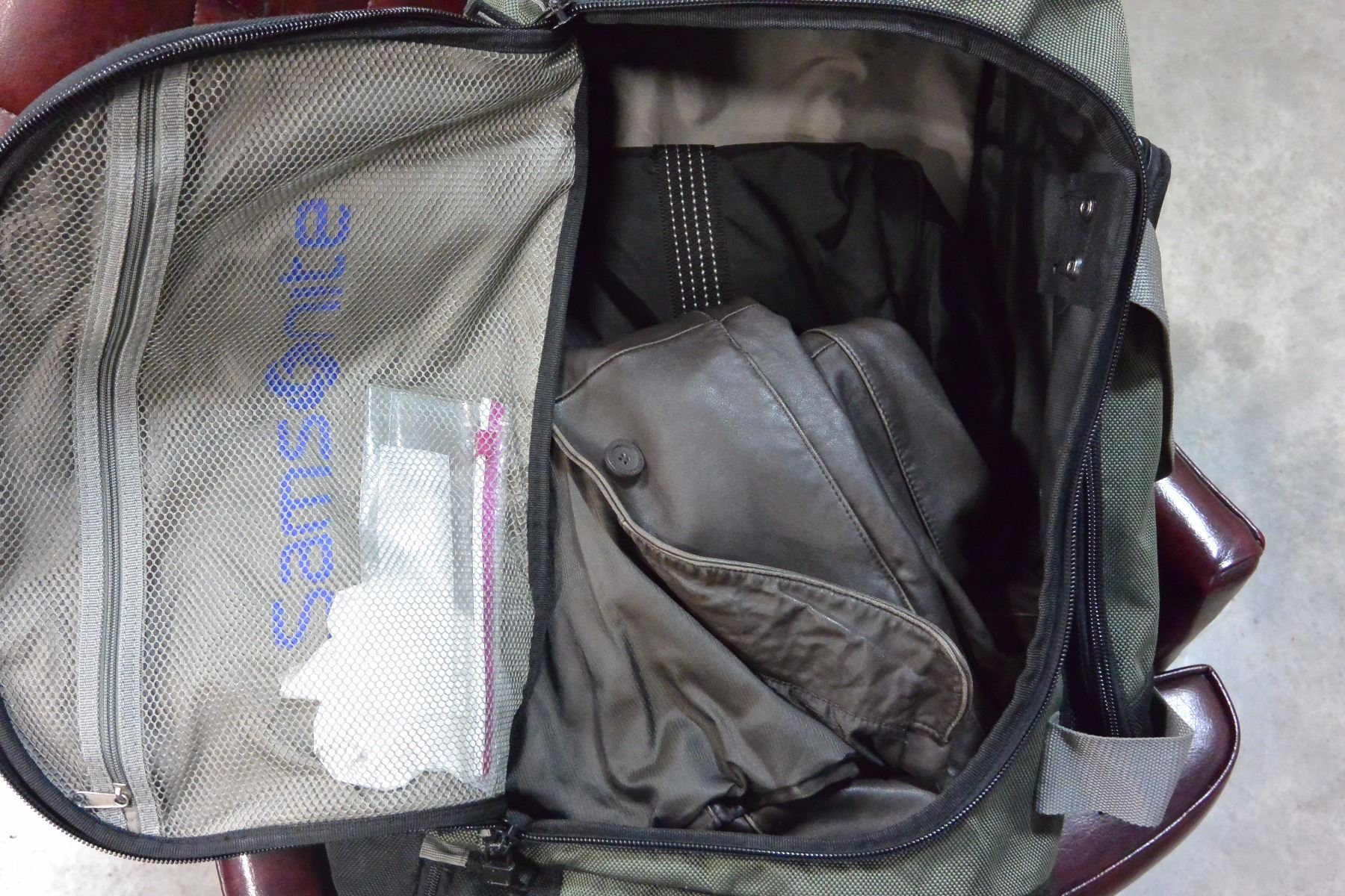 AS NEW SAMSONITE TRAVEL BAG AND OTHER BAG AND LEATHER COAT
