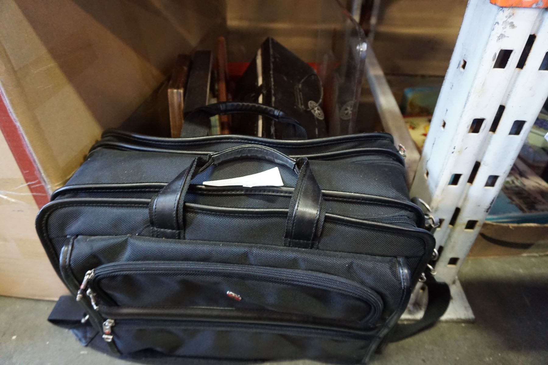 AS NEW SWISS ARMY BAG, BOX OF FIRST AID CONTAINER, AND OTHER COLLECTIBLES