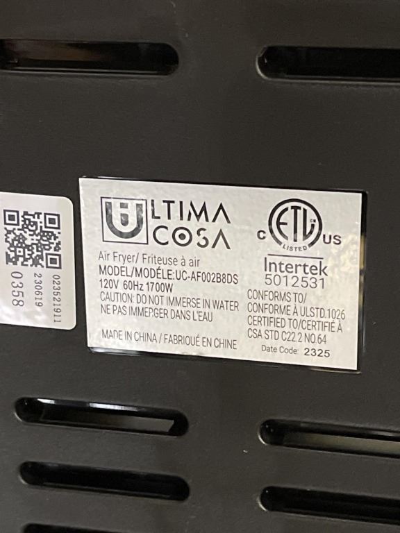 AS NEW ULTIMA COSA DIGITAL 8.5QT DUAL ZONE AIR FRYER - TESTED WORKING, RETAIL $299
