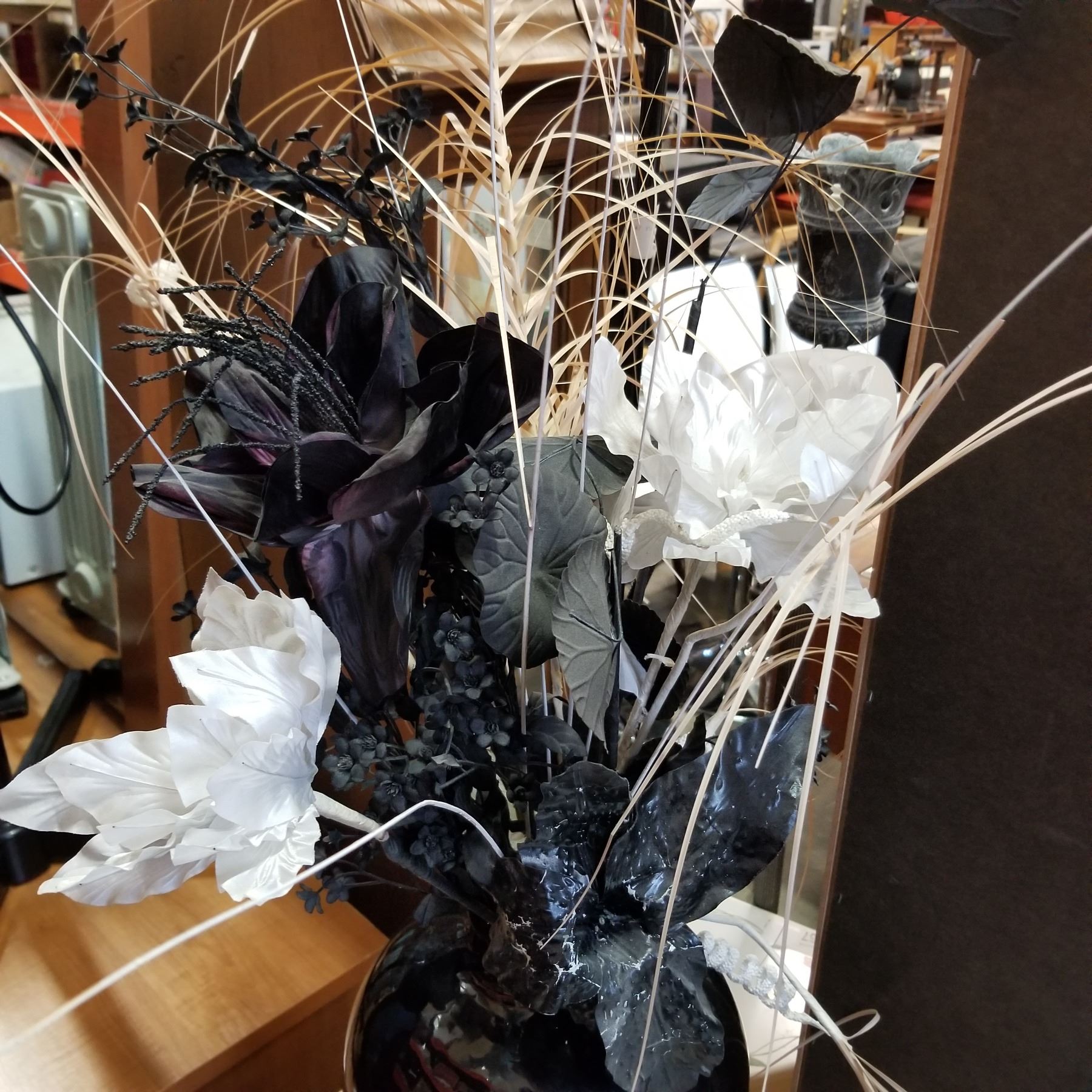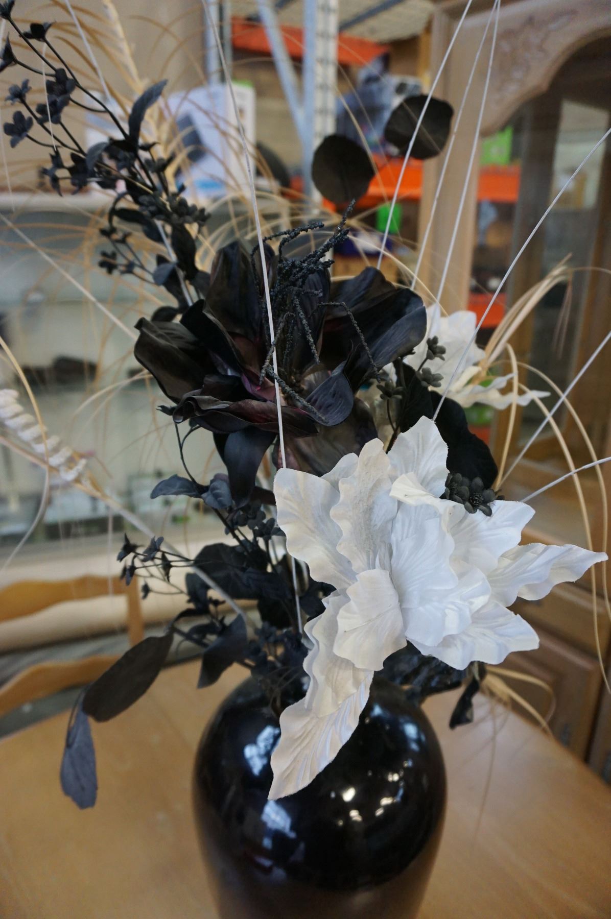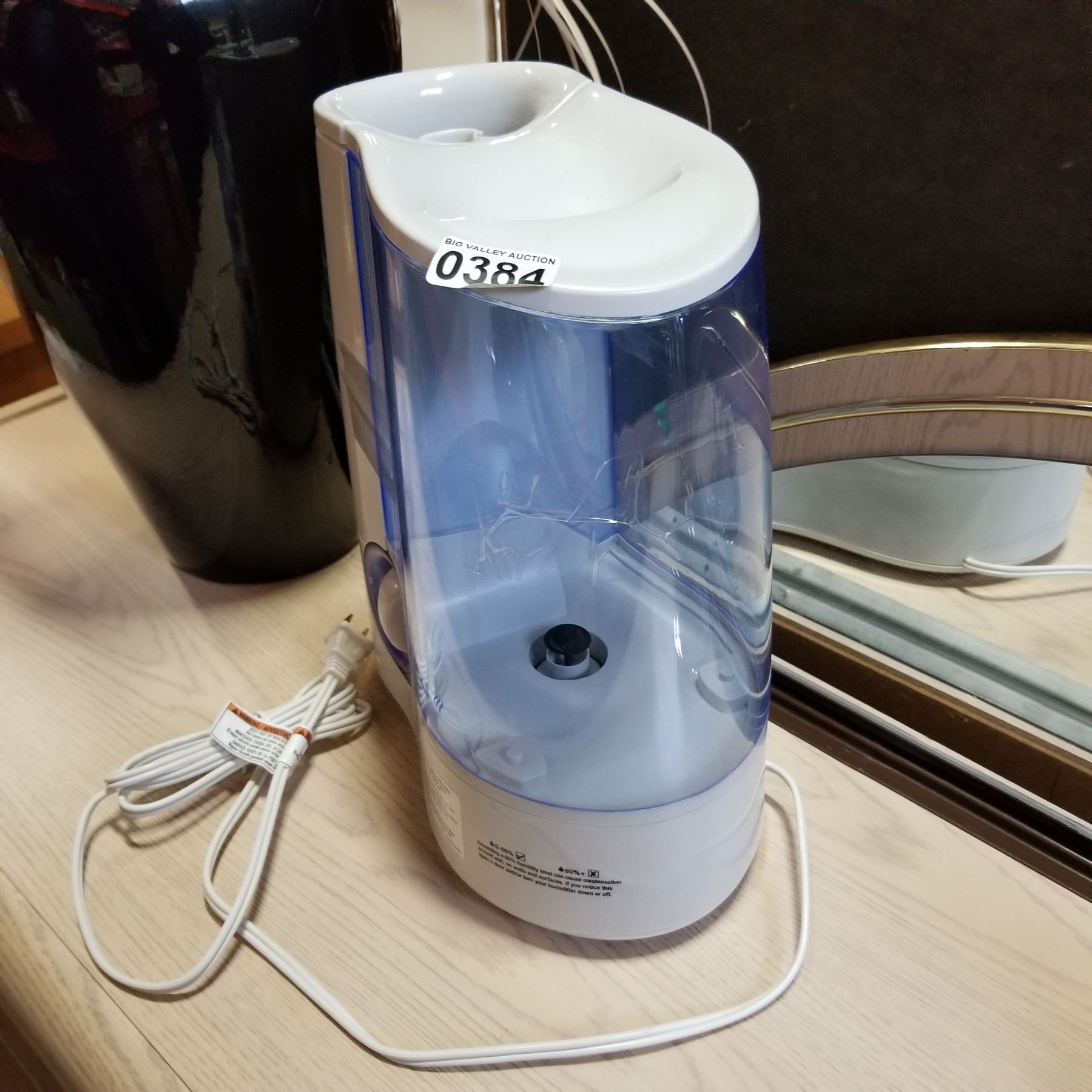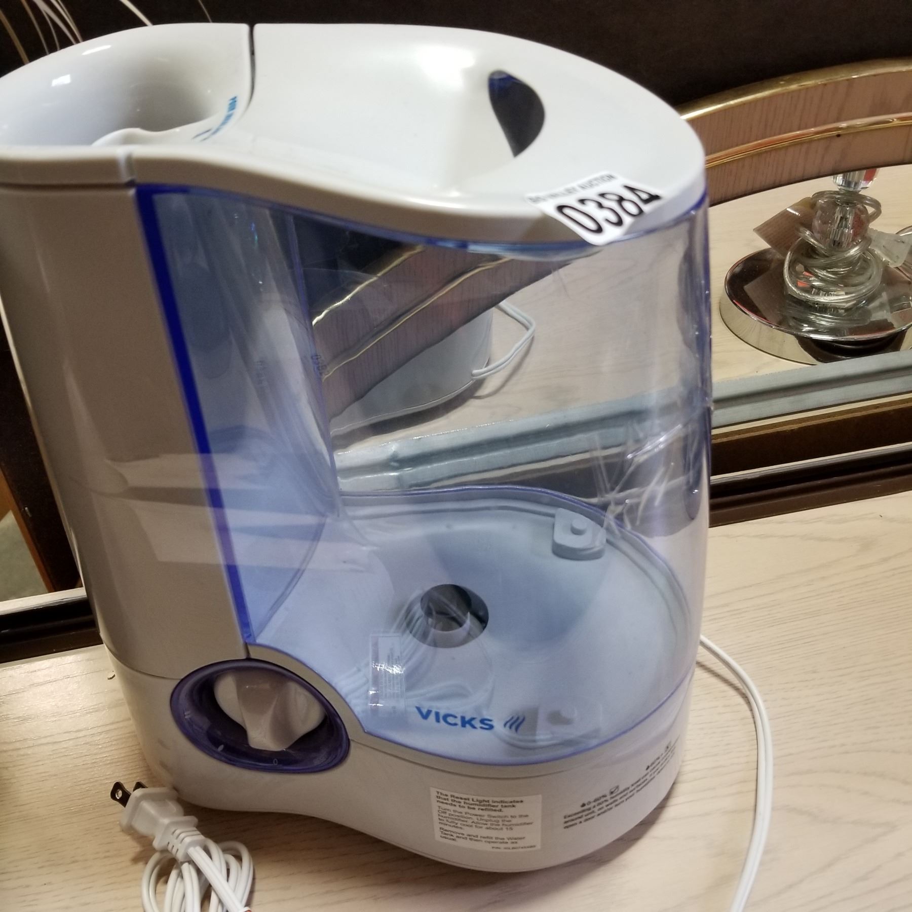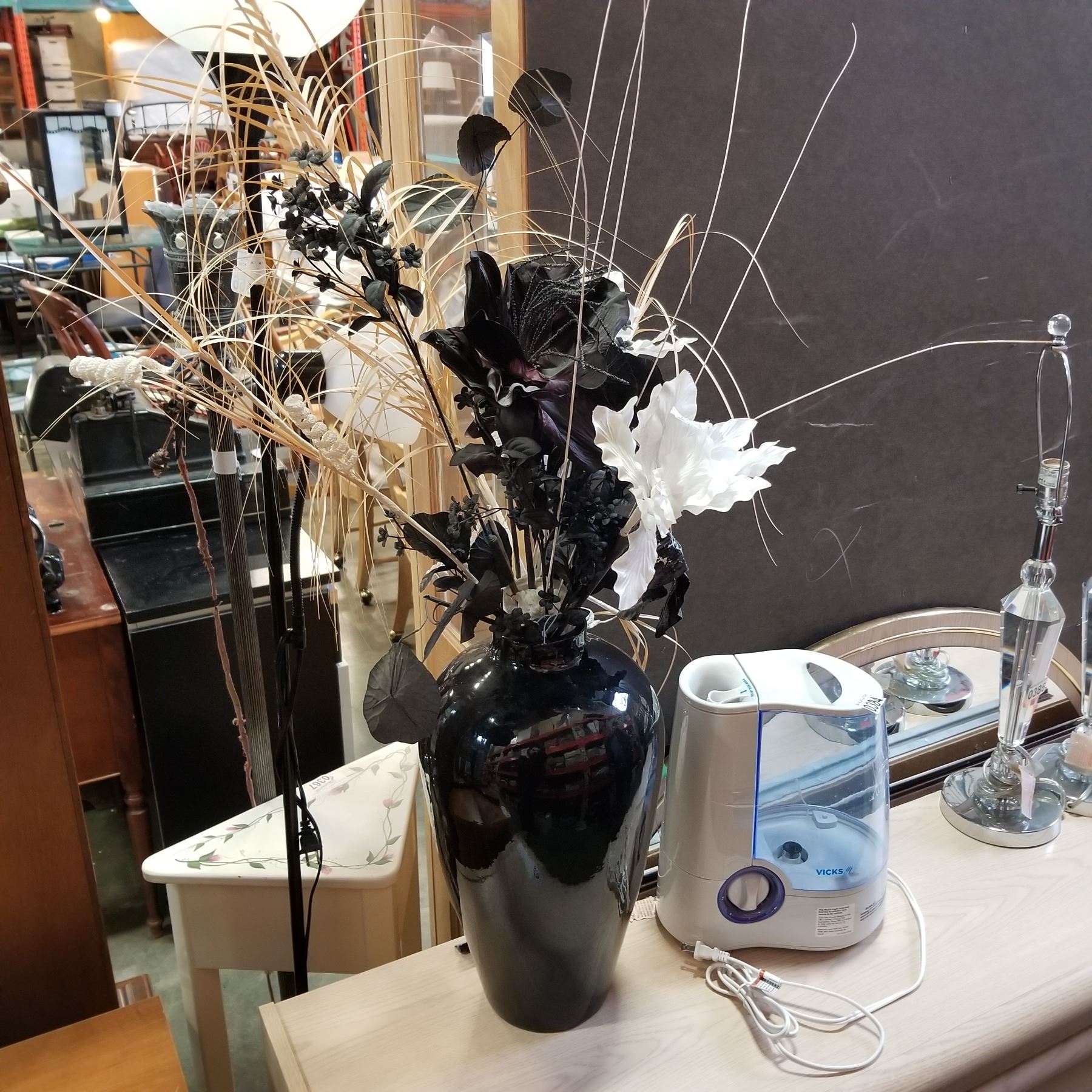 AS NEW VICKS HUMIDIFIER AND BLACK VASE WITH FLORALS
