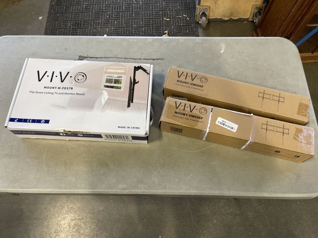 AS NEW VIVO PREMIUM ALUMINUM SINGLE MONITOR WALL MOUNT AND 2 ULTRA HEAVY DUTY TV WALL MOUNTS