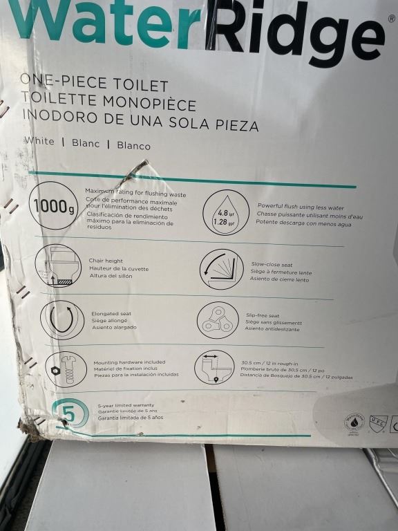 AS NEW WATER RIDGE ONE PIECE TOILET