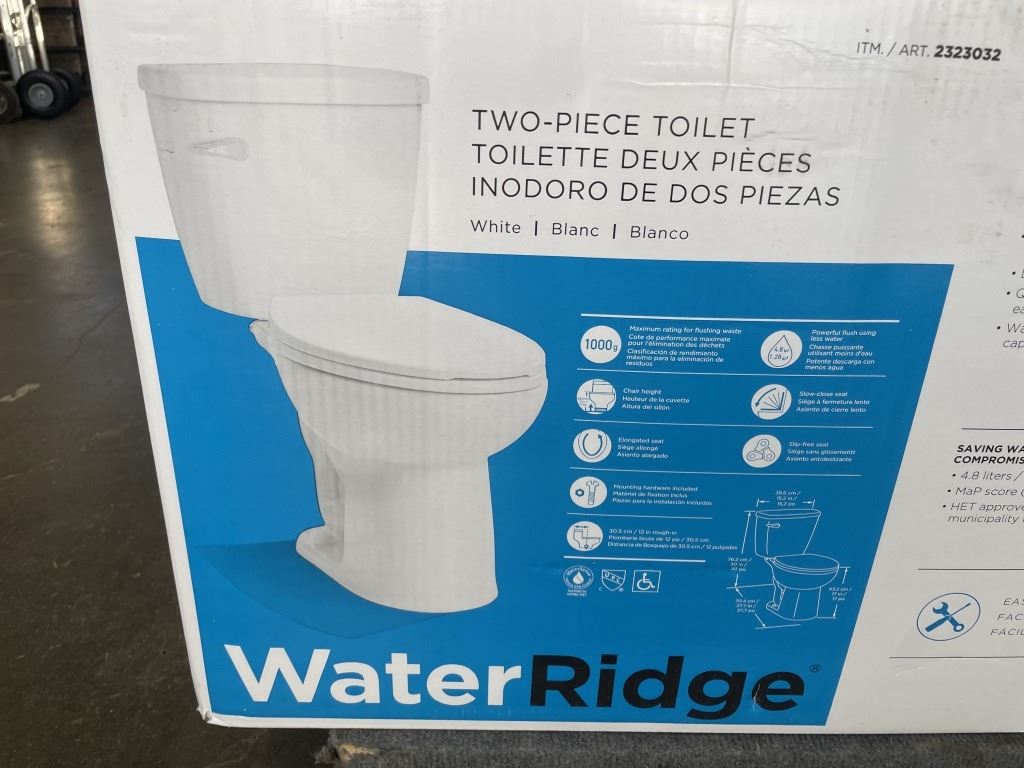 AS NEW WATER RIDGE TWO PIECE TOILET