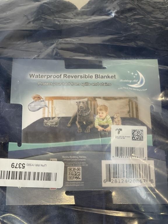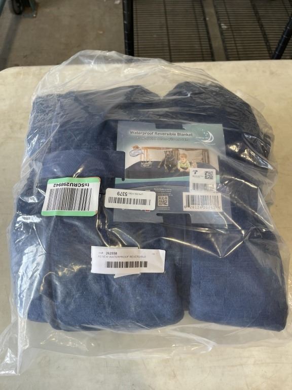 AS NEW WATERPROOF REVERSIBLE BLANKET, APPROX 90 X 108 INCH