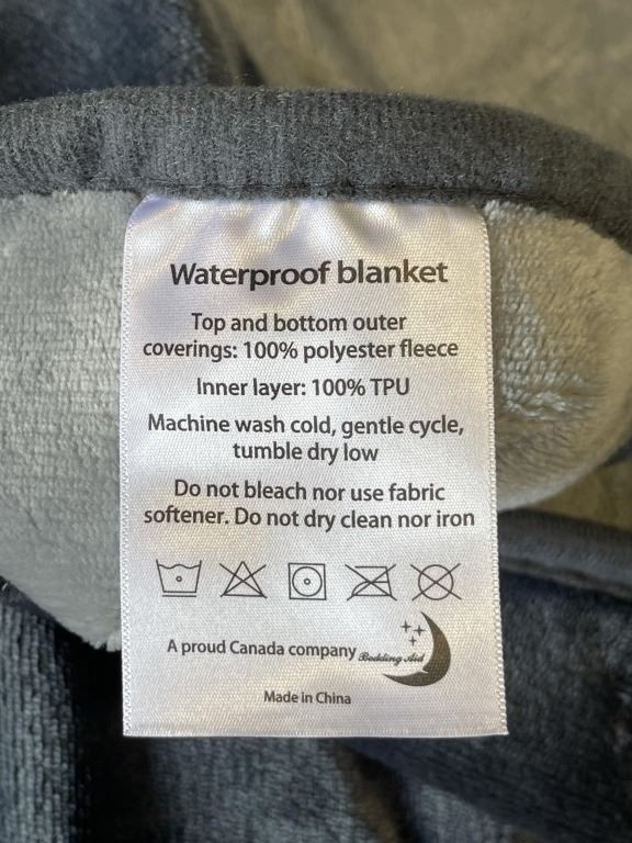 AS NEW WATERPROOF REVERSIBLE BLANKET, APPROX 90 X 108 INCH