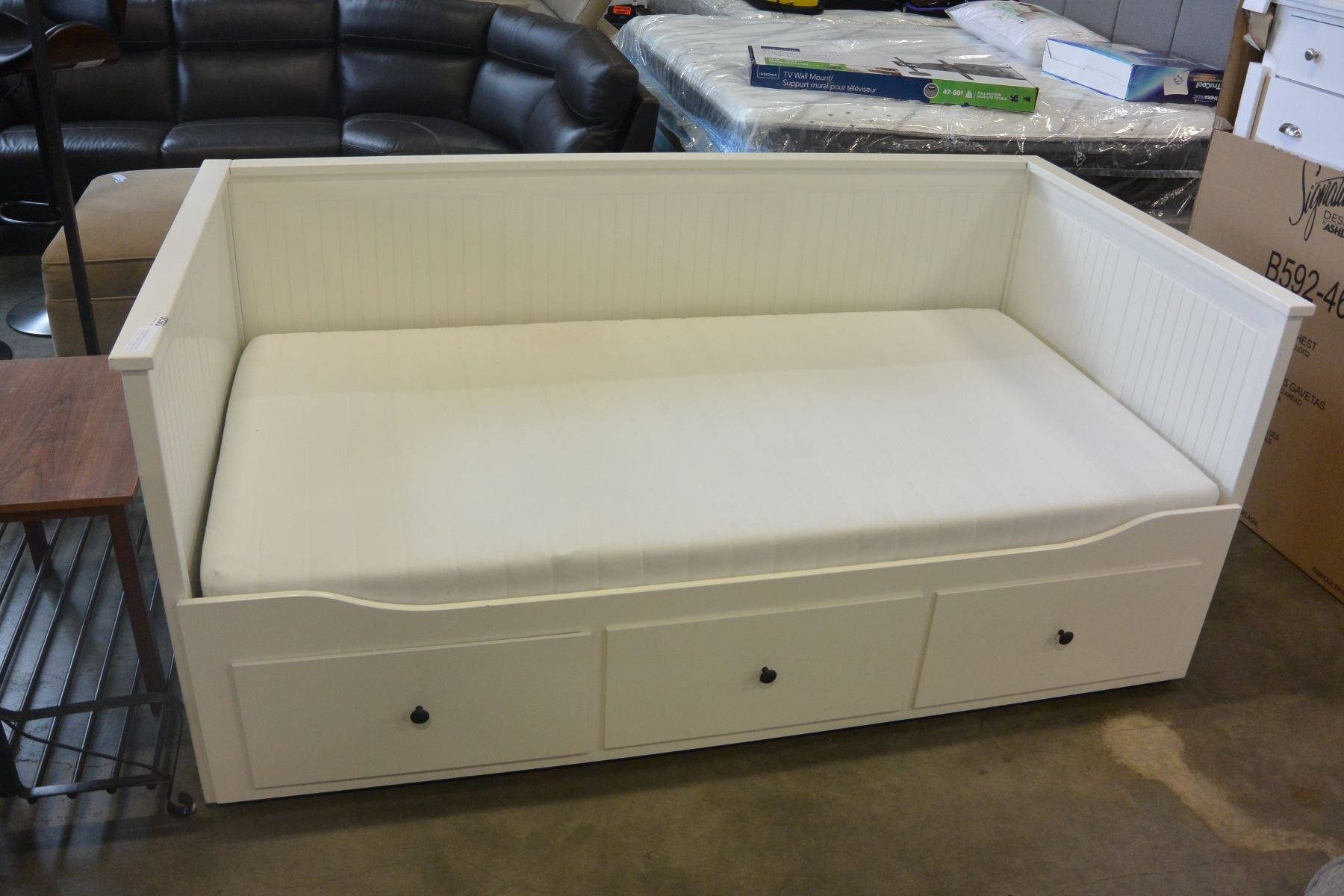 AS NEW WHITE TRUNDLE BED WITH 2 FOAM SINGLE SIZE MATTRESSES