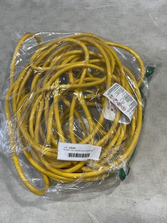 AS NEW YELLOW INDOOR OUTDOOR 50FT HEAVY DUTY LIGHTED EXTENSION CORD, 14AWG, 3 WIRE