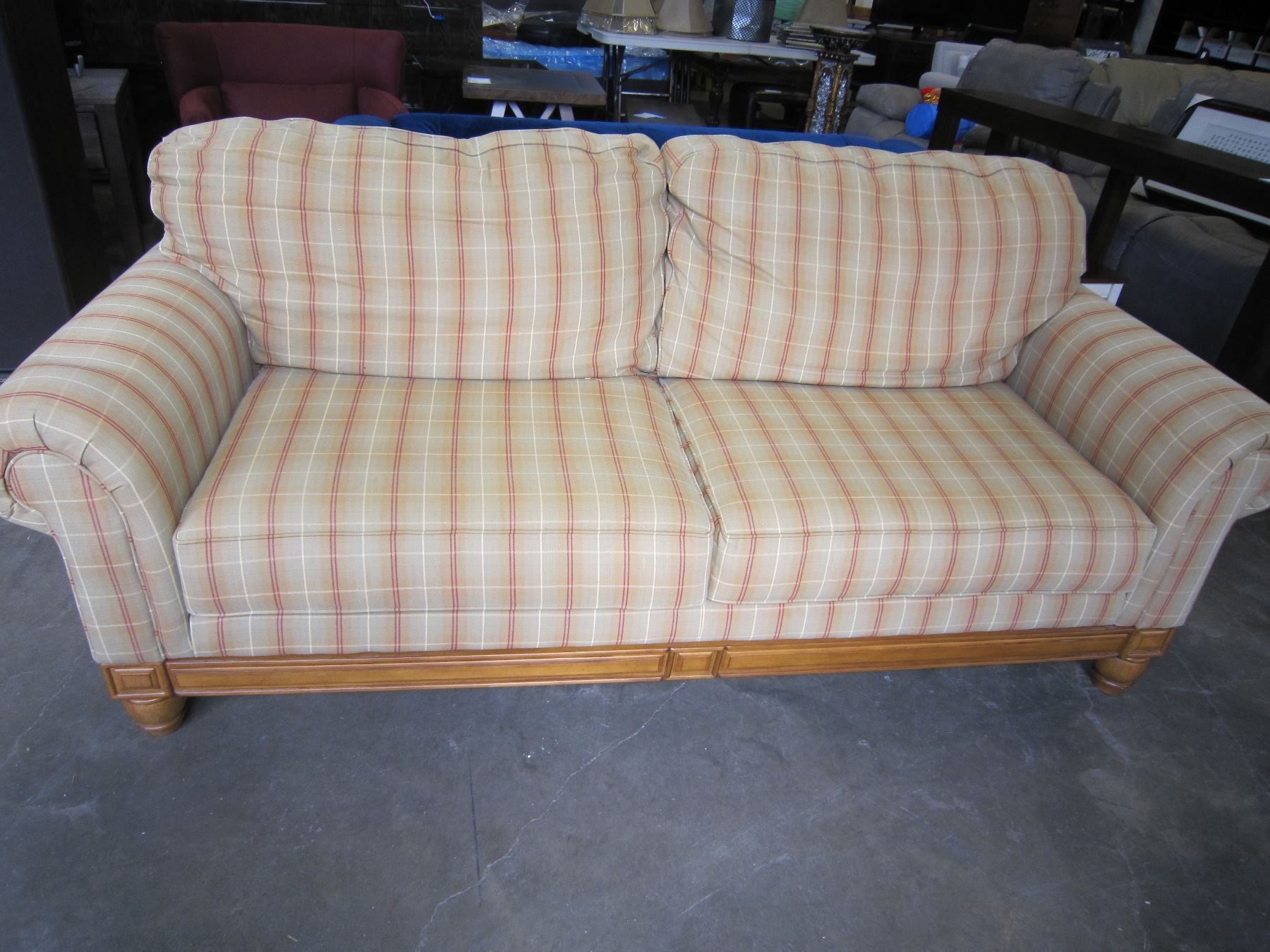 ASHLEY CONTEMPORARY WOOD FRAMED SOFA, FLOOR MODEL, RETAIL $1899