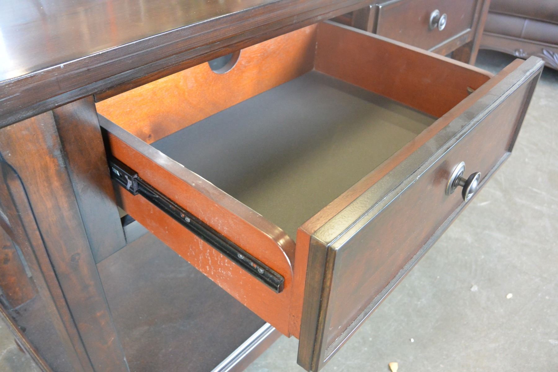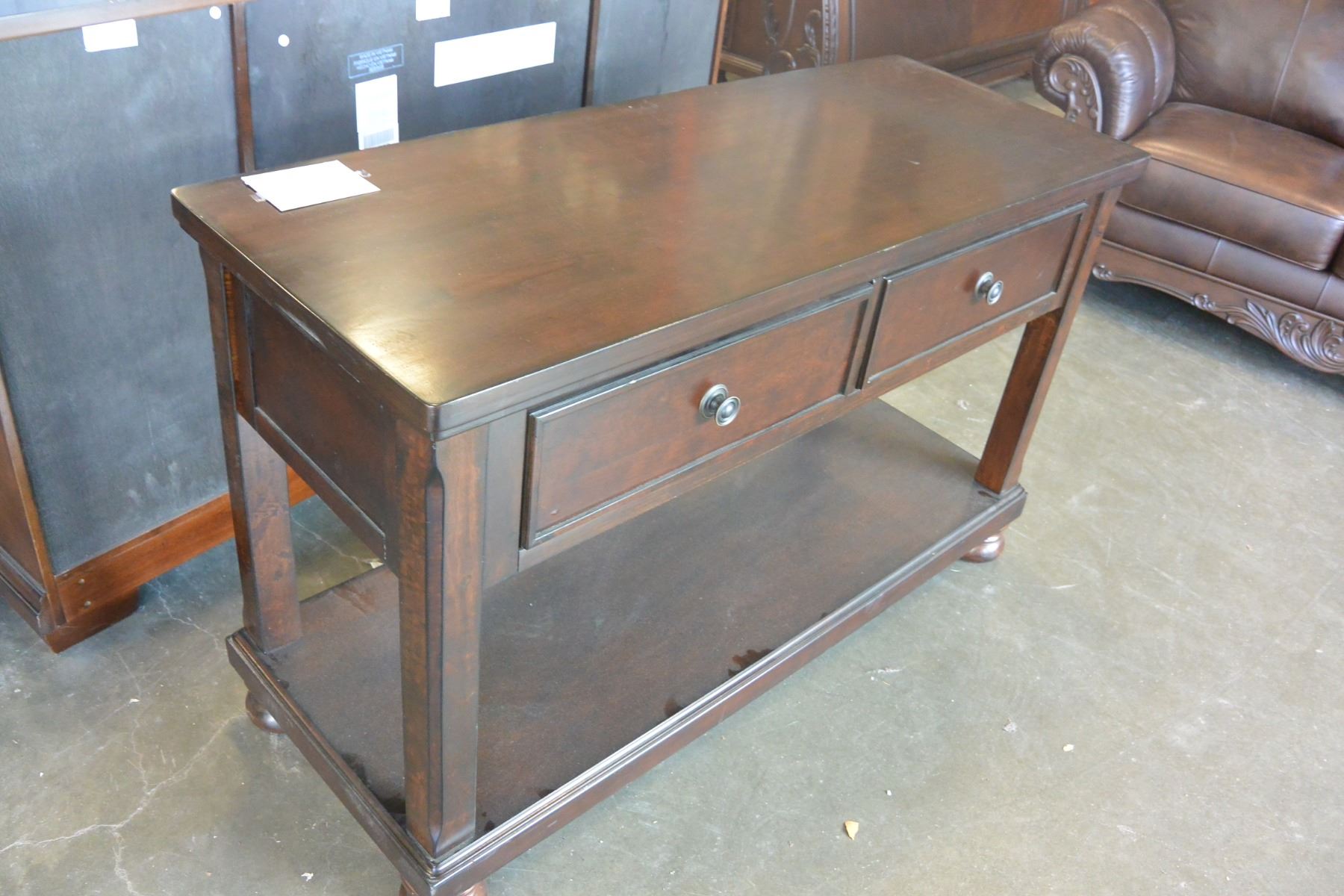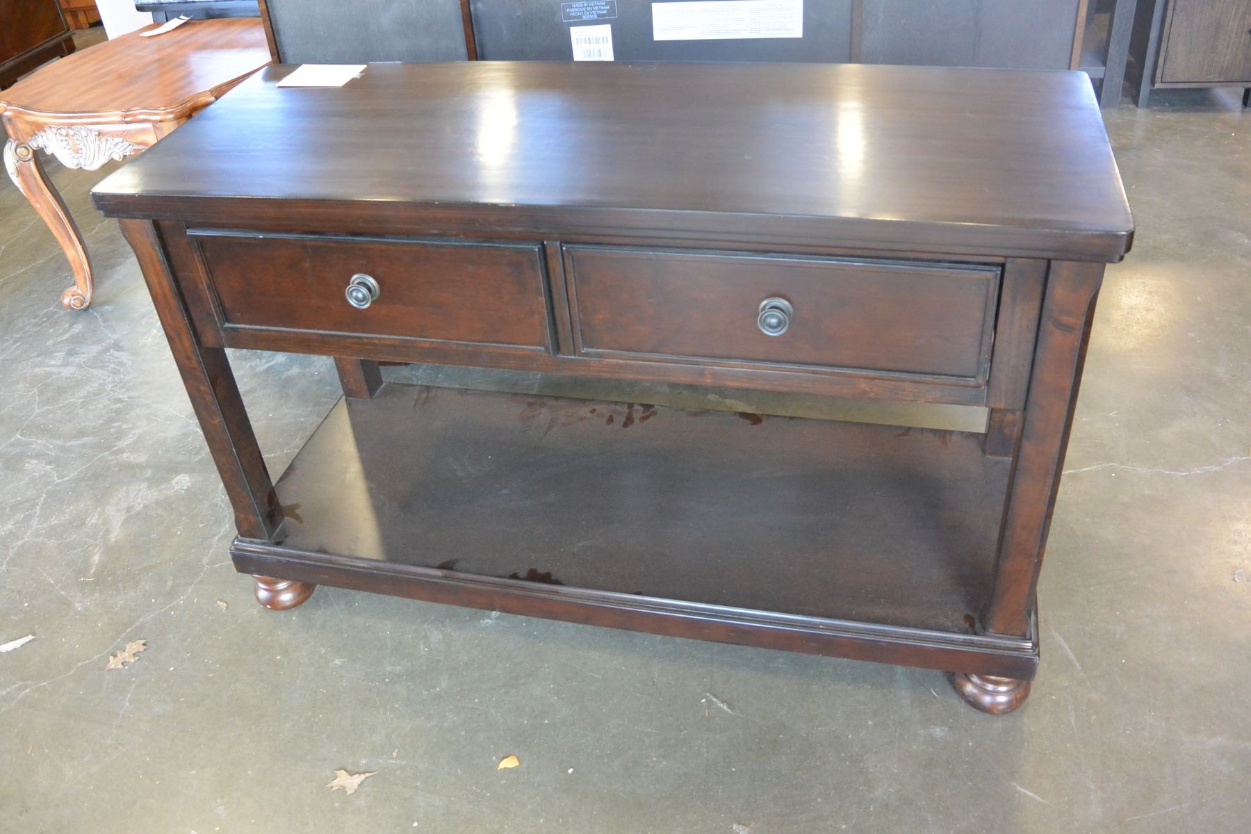 ASHLEY FLOOR MODEL 2 DRAWER CONSOLE MEDIA OR SOFA TABLE, DARK FINISH RETAIL $749
