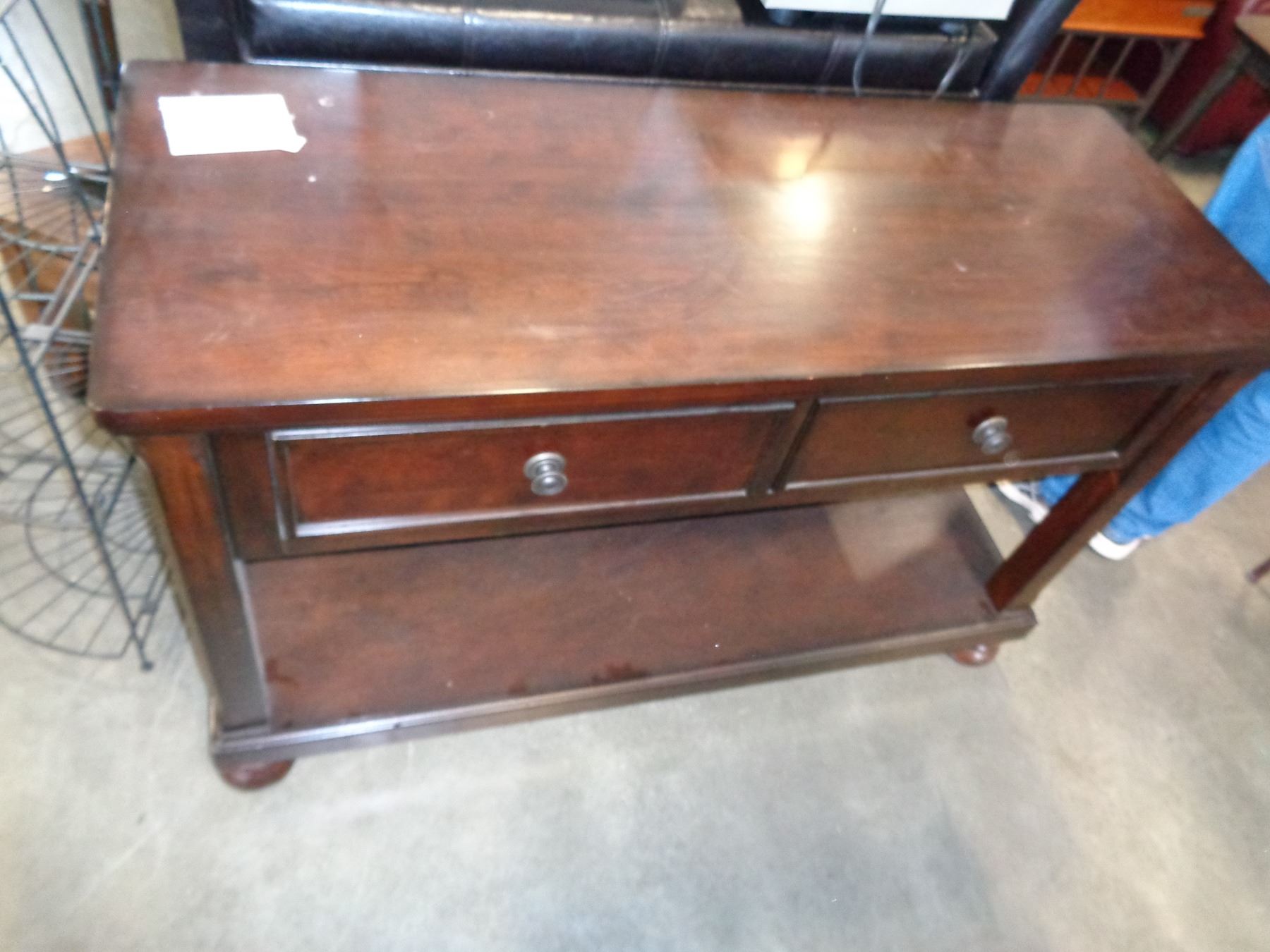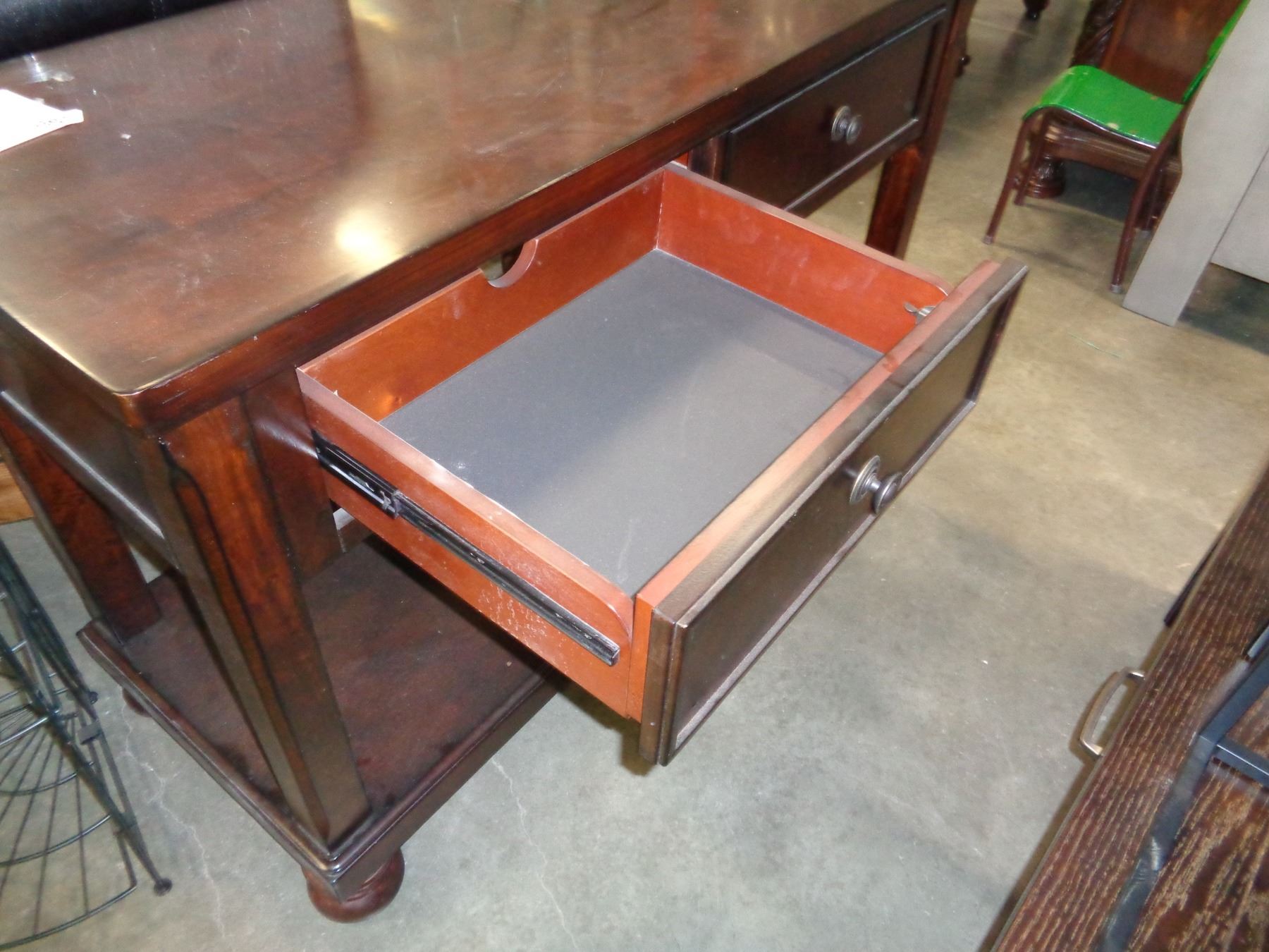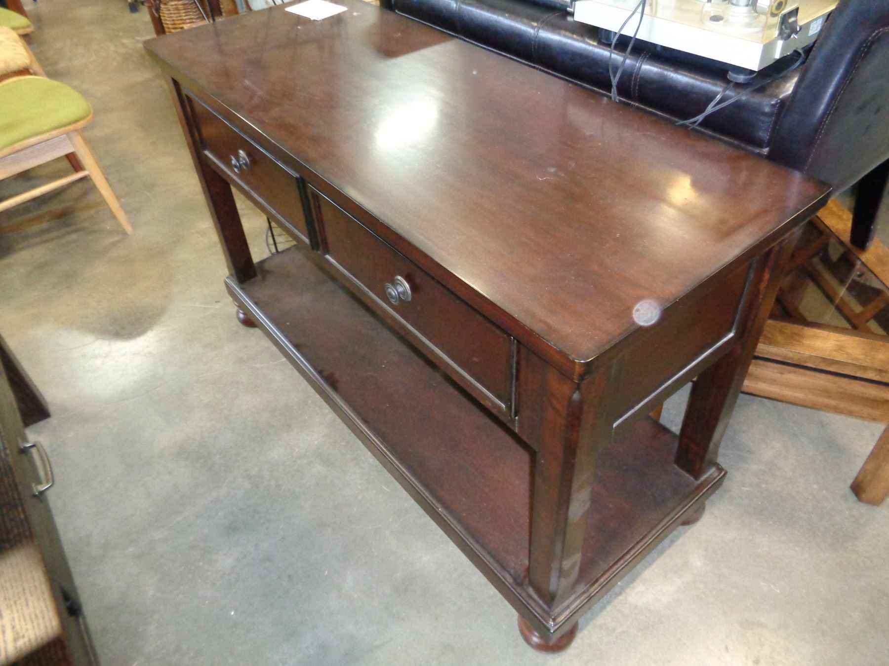 ASHLEY FLOOR MODEL 2 DRAWER CONSOLE MEDIA OR SOFA TABLE, DARK FINISH RETAIL $749
