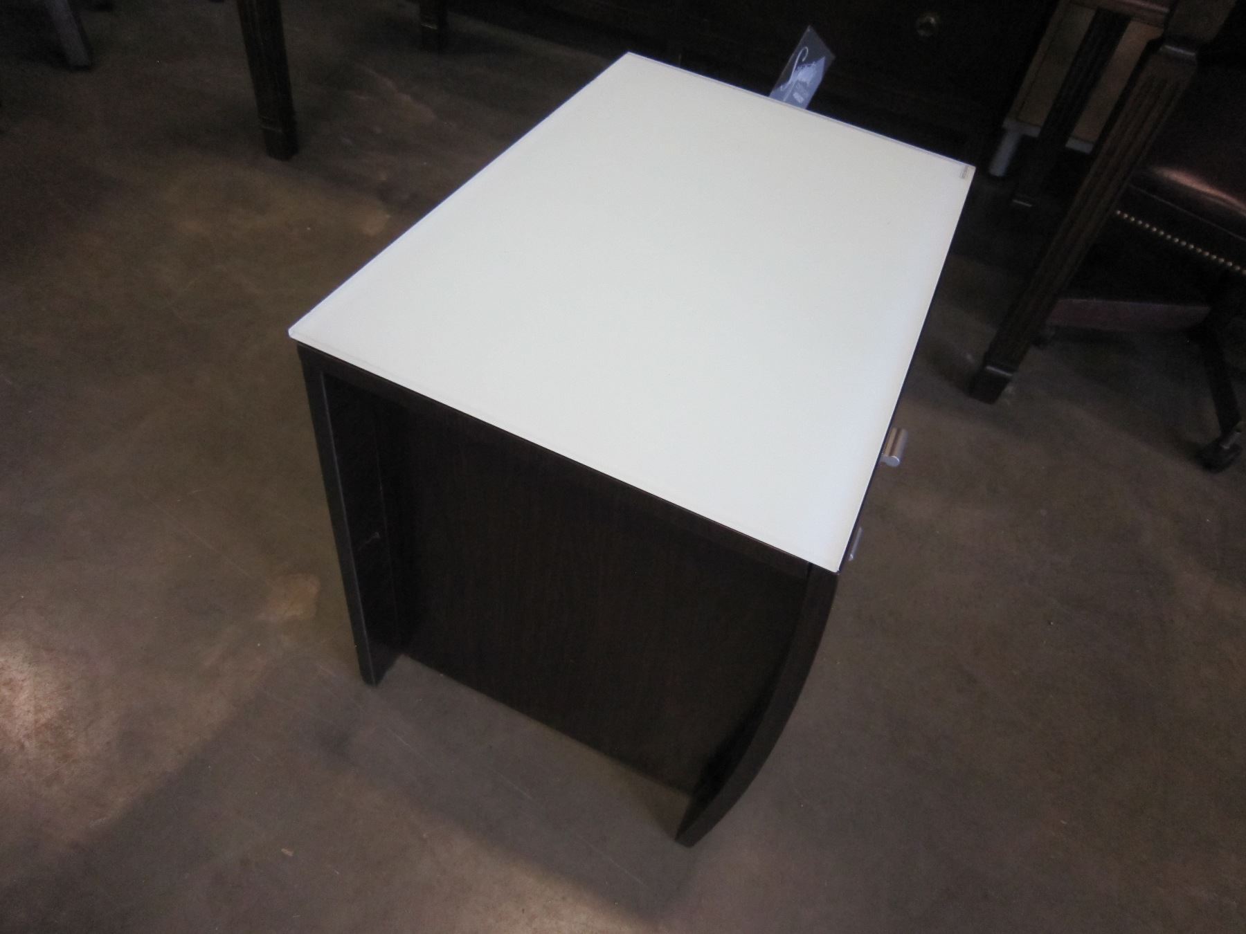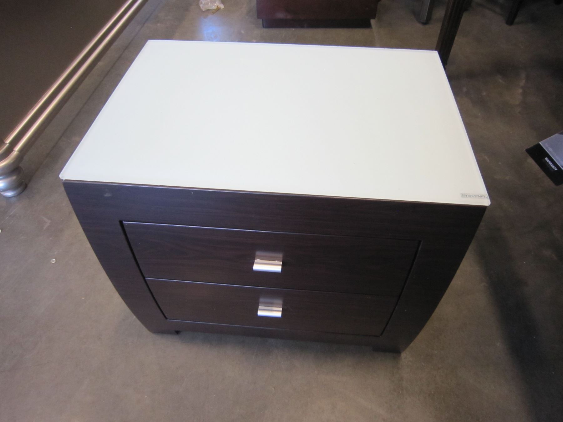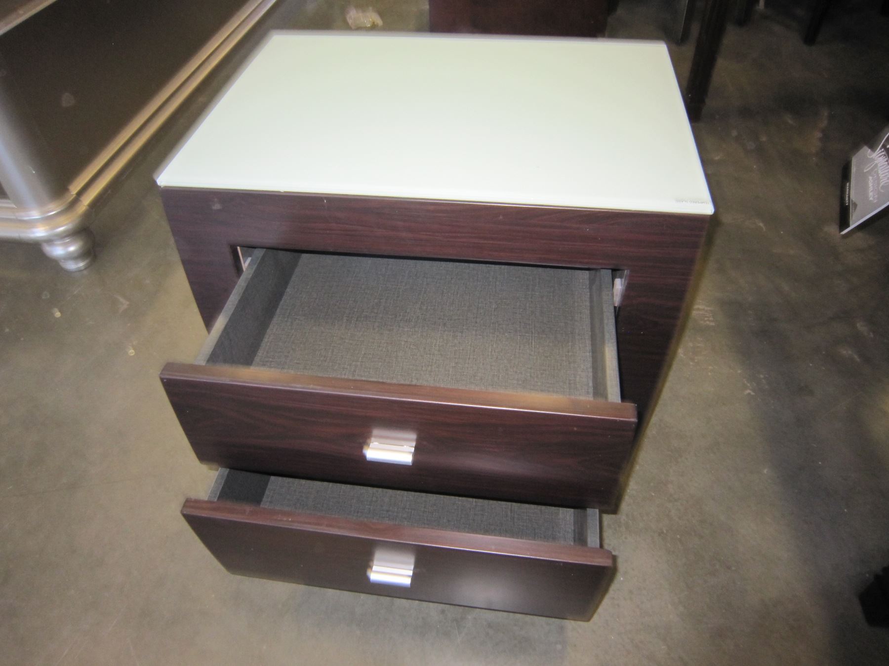 ASHLEY FLOOR MODEL 2 DRAWER NIGHTSTAND WITH GLASS TOP, RETAIL $219