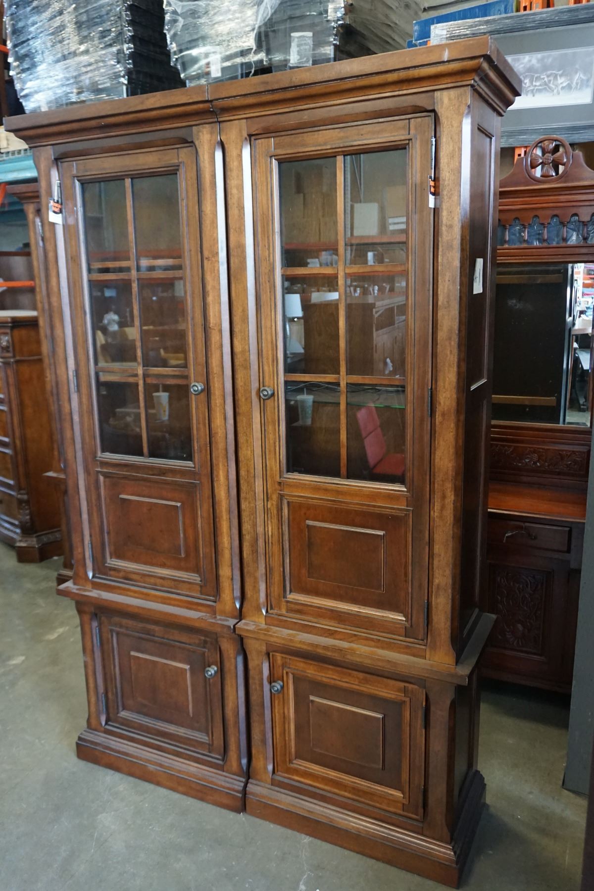 ASHLEY FLOOR MODEL 2 PIECE ILLUMINATED GLASS DOOR DISPLAY PIER UNIT, RETAIL $2749
