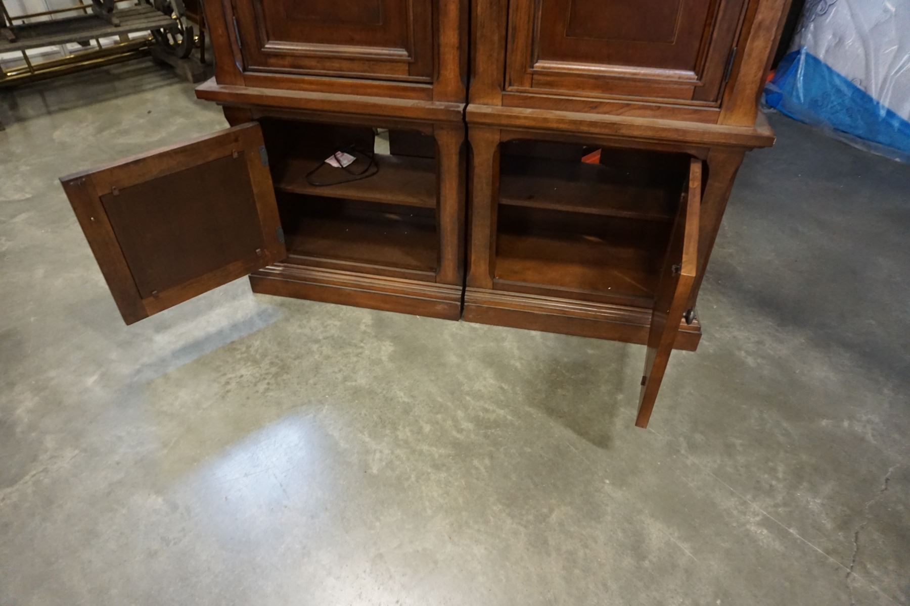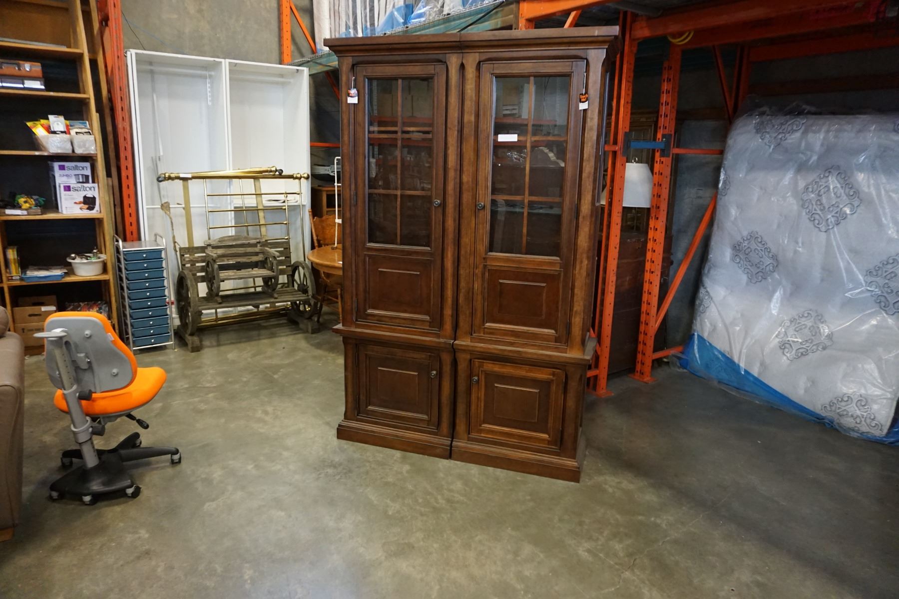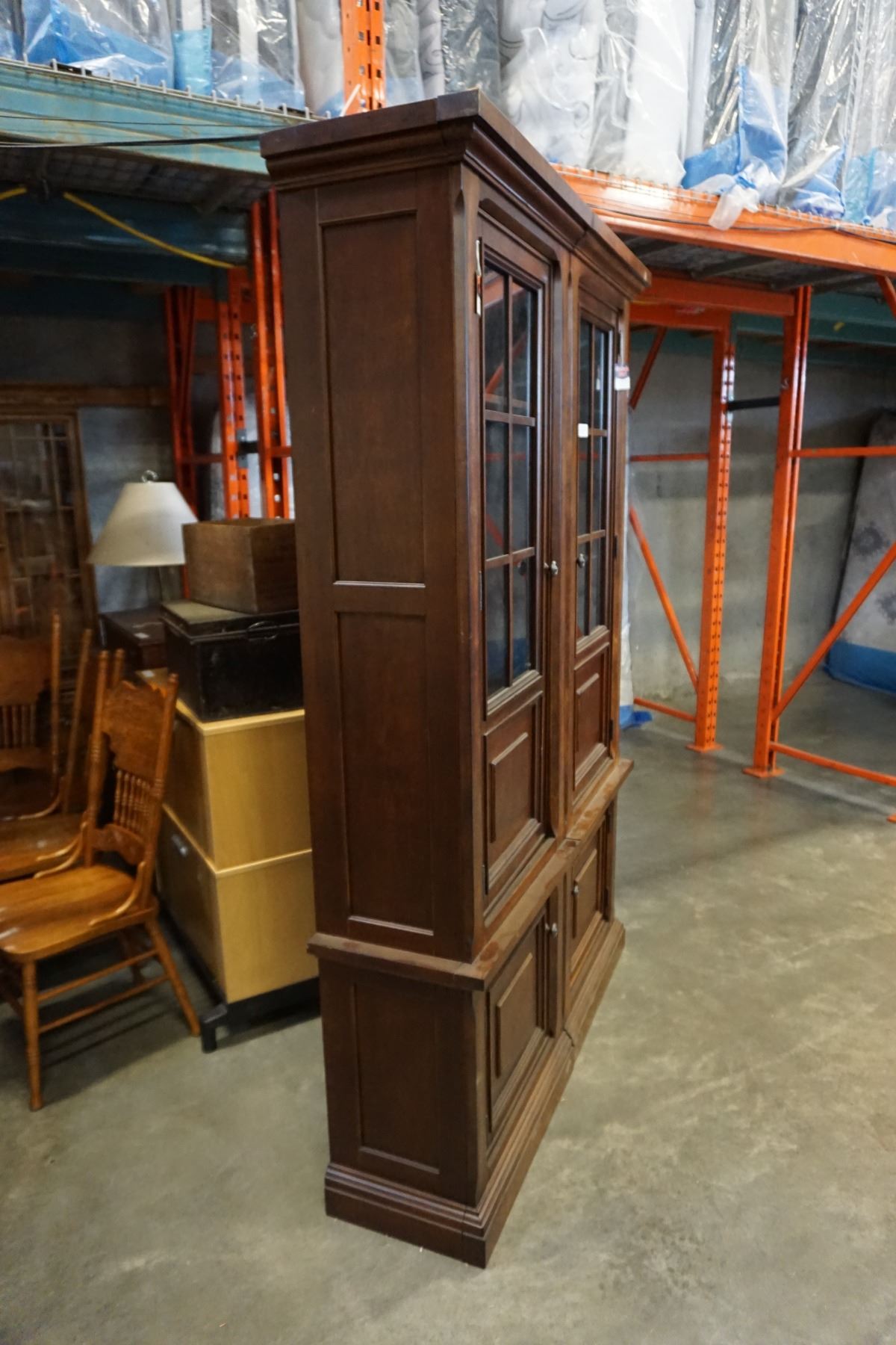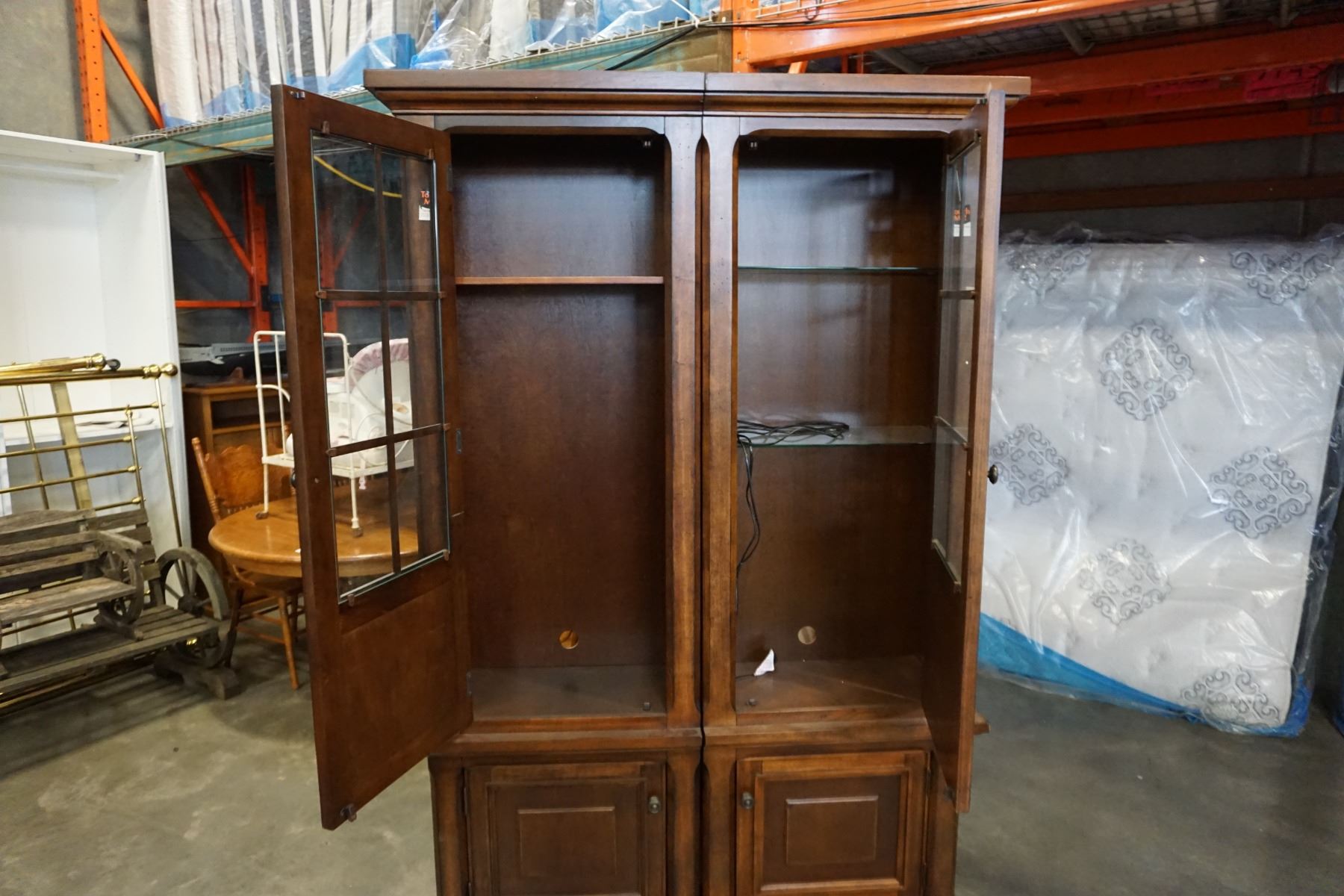ASHLEY FLOOR MODEL 2 PIECE ILLUMINATED GLASS DOOR DISPLAY PIER UNIT, RETAIL $2749