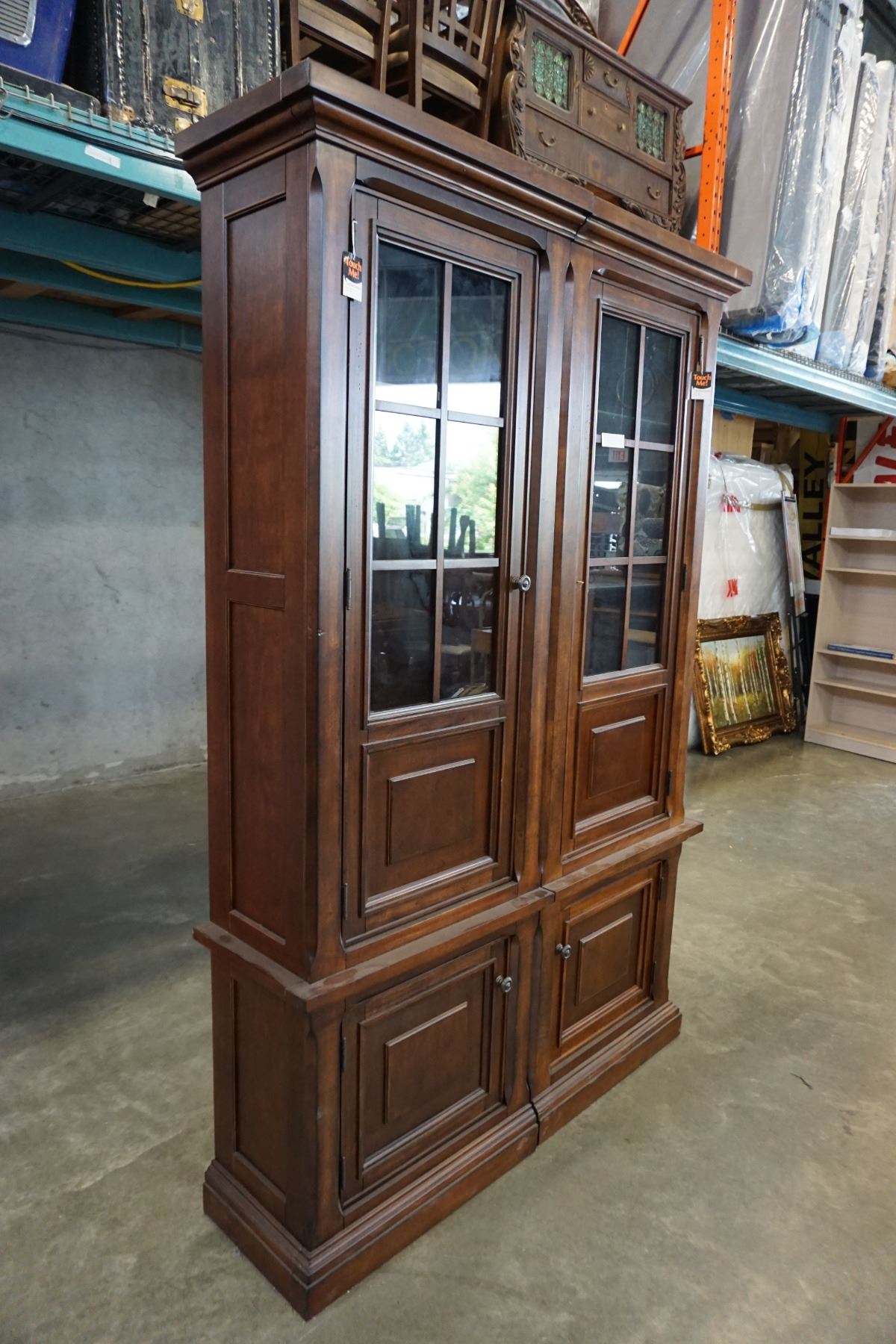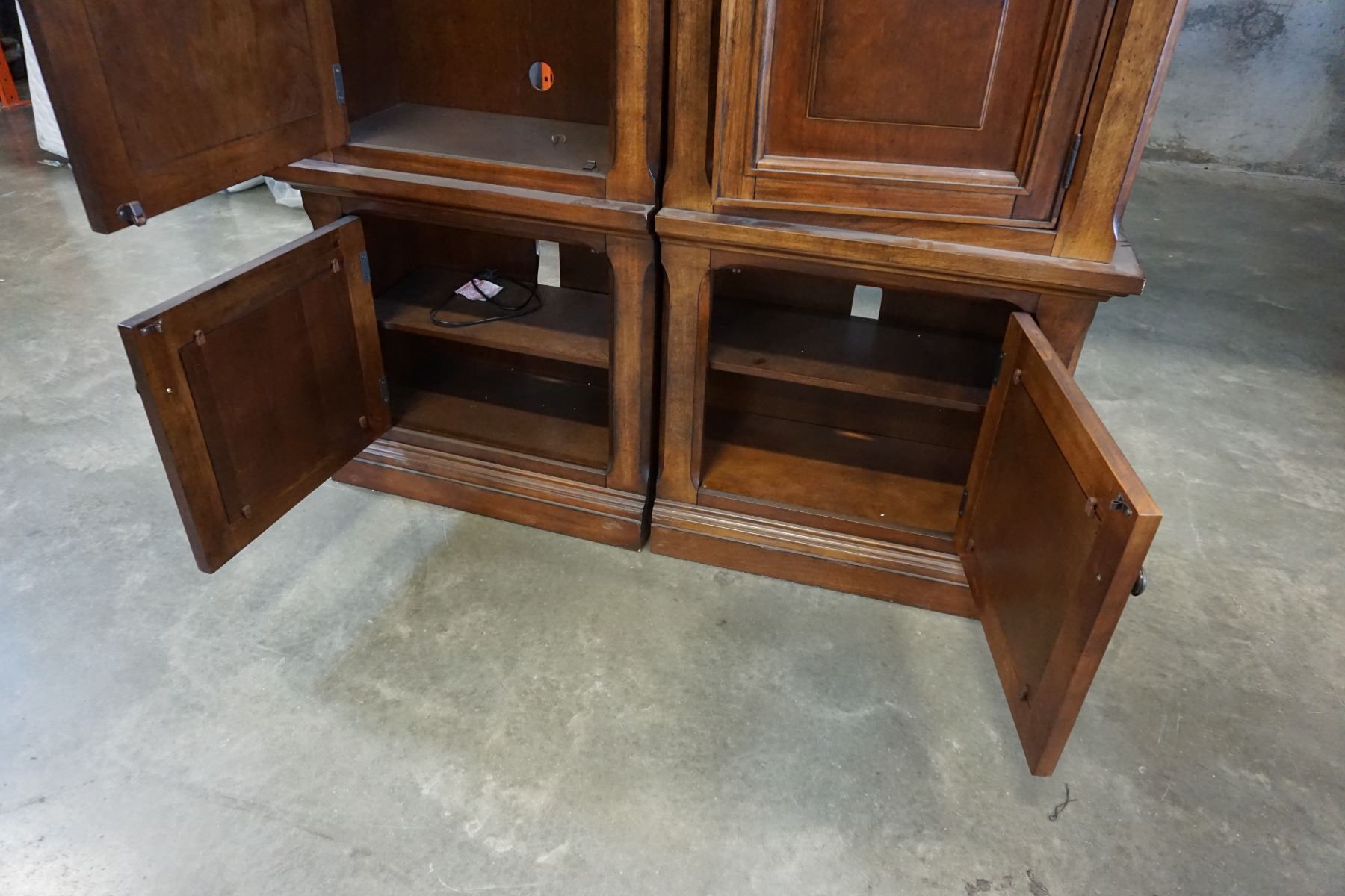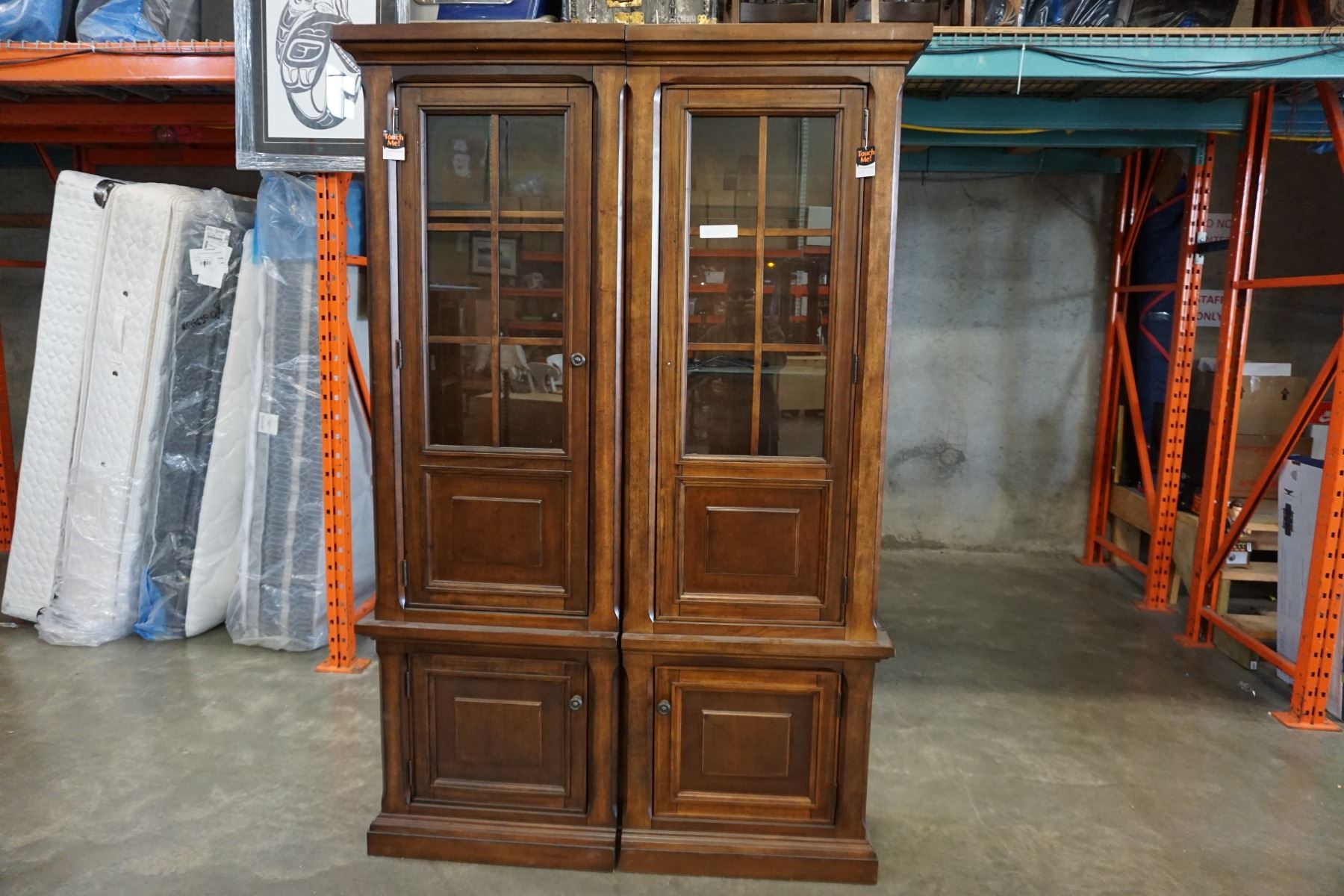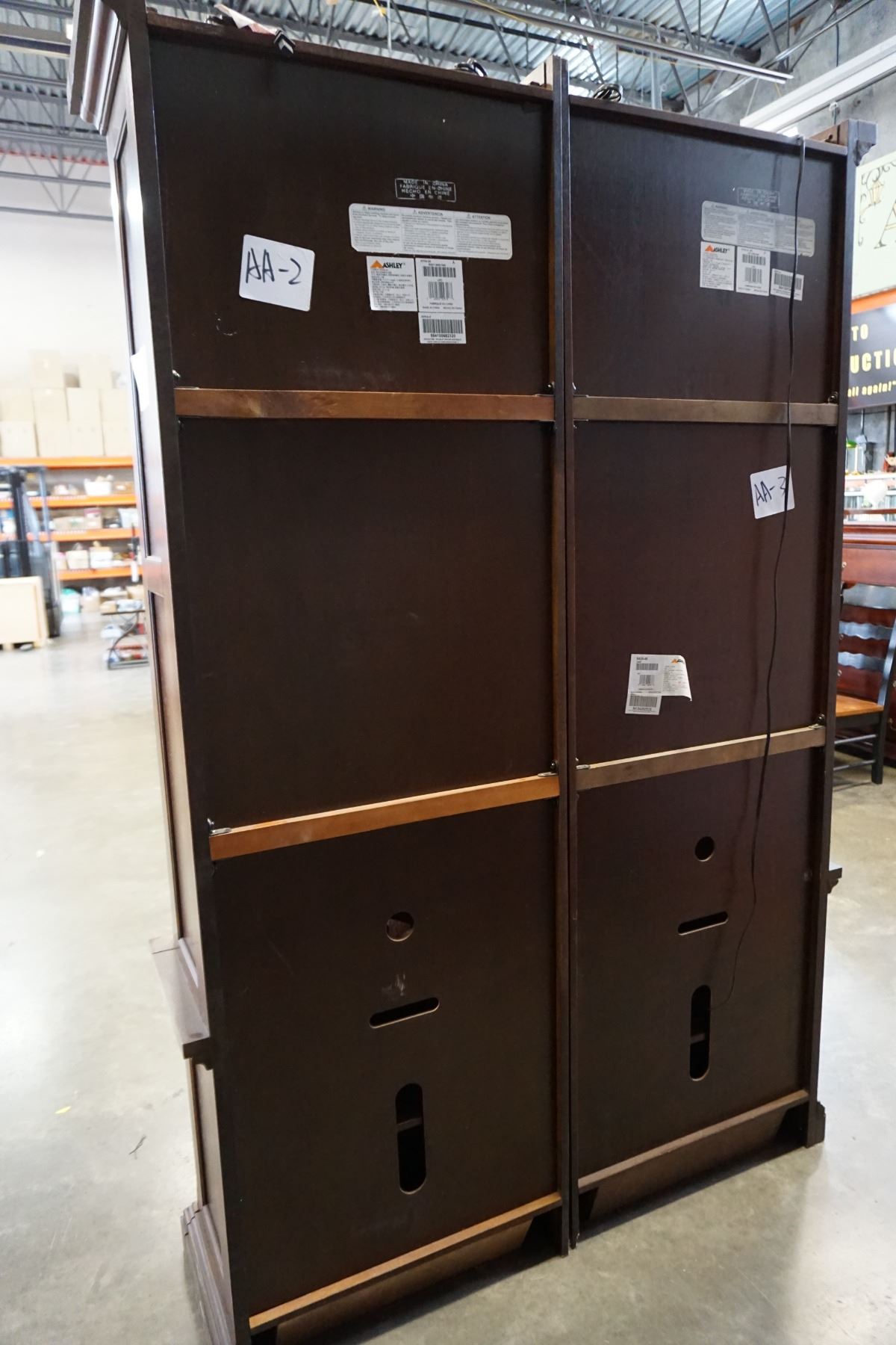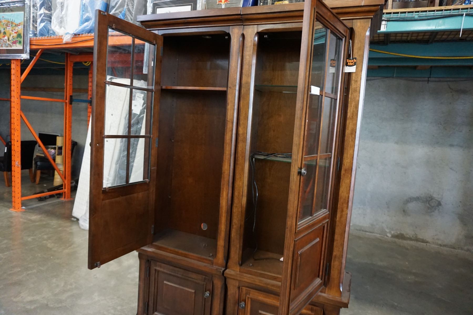 ASHLEY FLOOR MODEL 2 PIECE ILLUMINATED GLASS DOOR DISPLAY PIER UNIT, RETAIL $2749