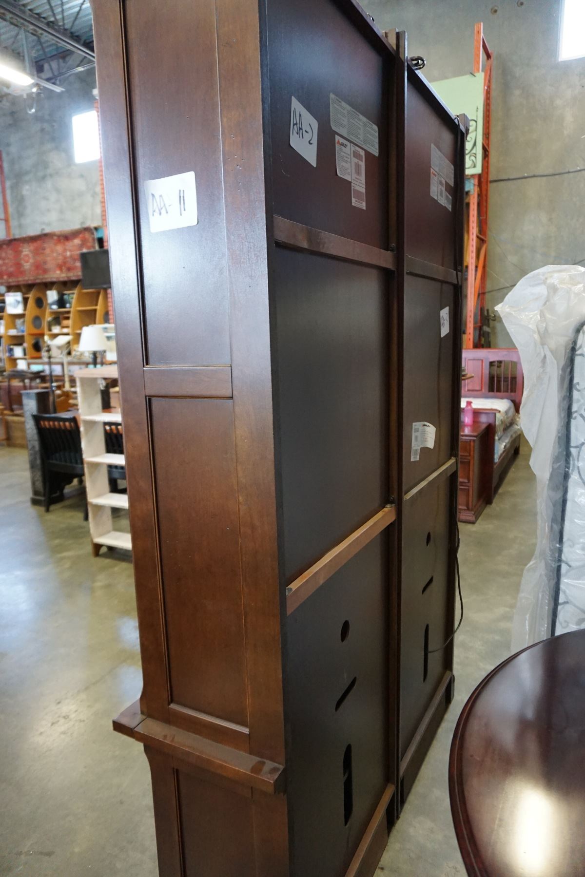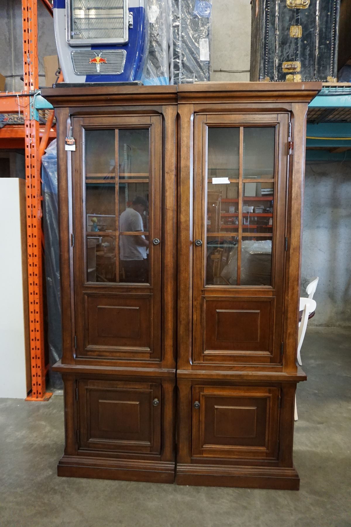 ASHLEY FLOOR MODEL 2 PIECE ILLUMINATED GLASS DOOR DISPLAY PIER UNIT, RETAIL $2749