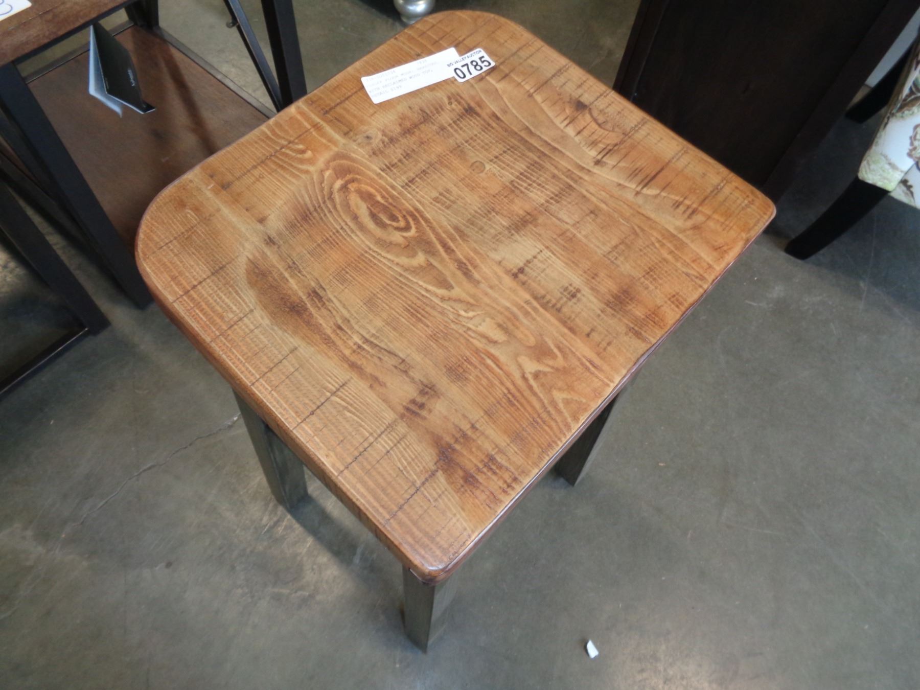 ASHLEY FLOOR MODEL BARSTOOL WITH RECLAIMED WOOD TOP, RETAIL $199