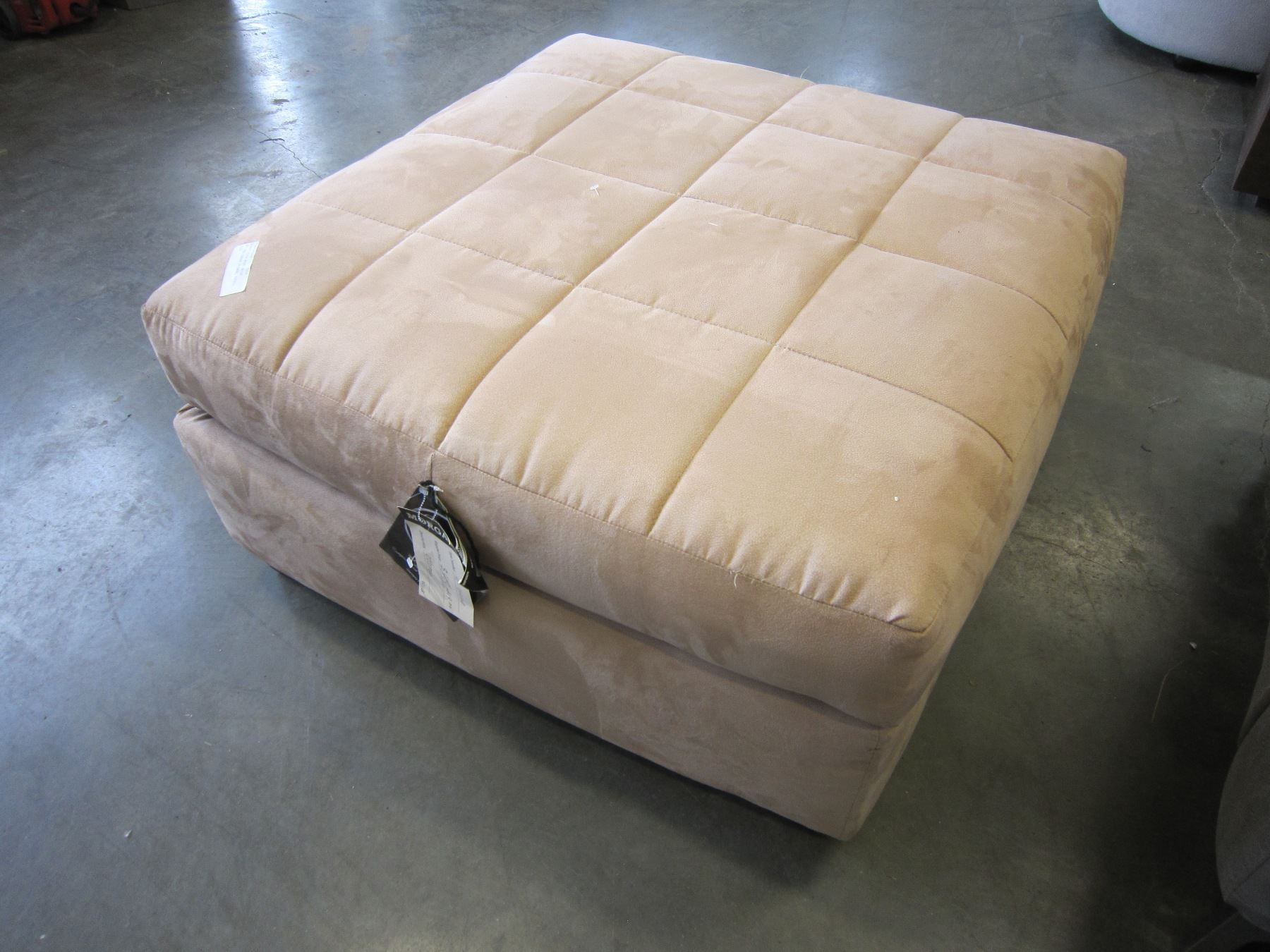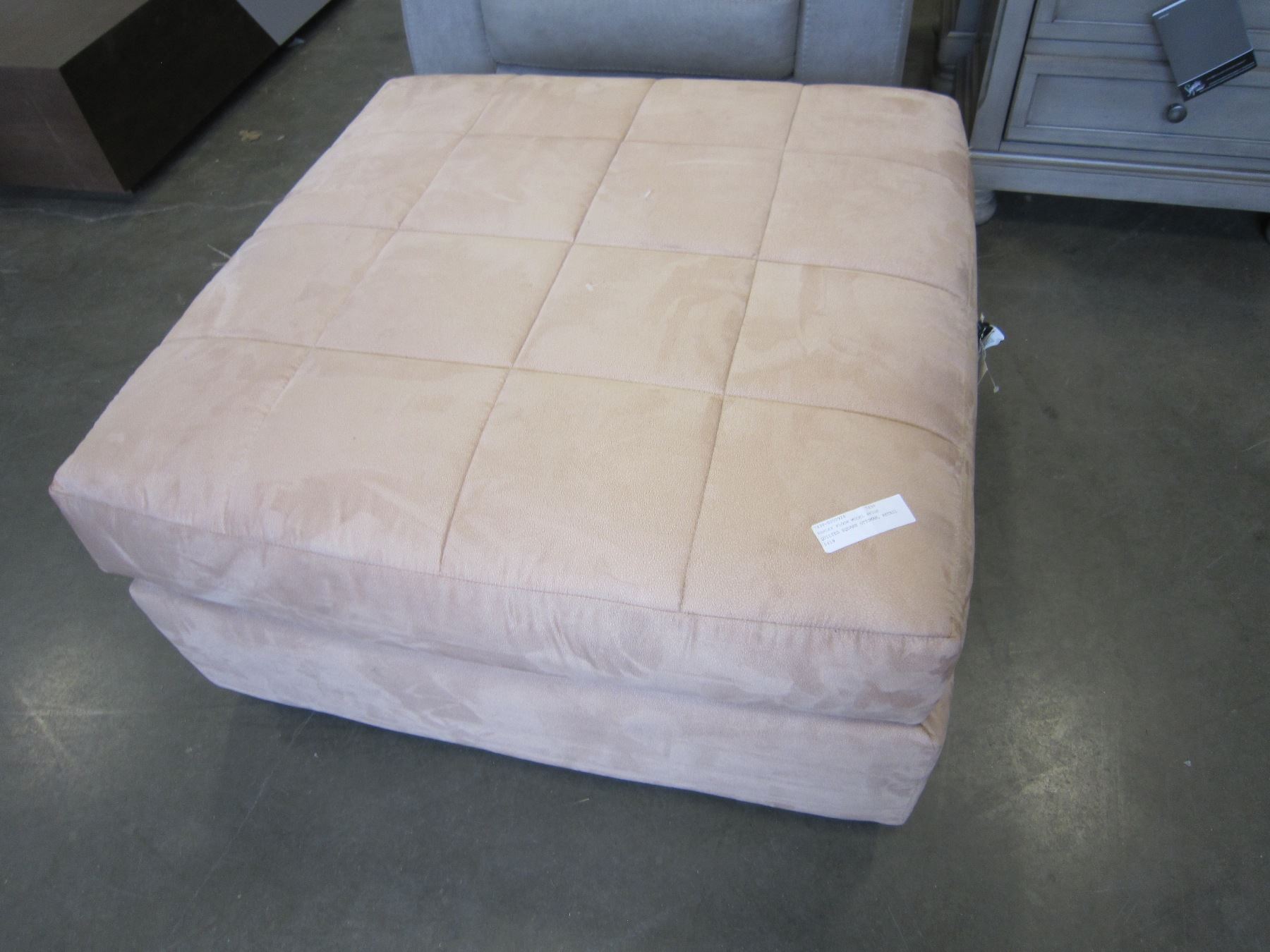 ASHLEY FLOOR MODEL BEIGE QUILTED SQUARE OTTOMAN, RETAIL $419