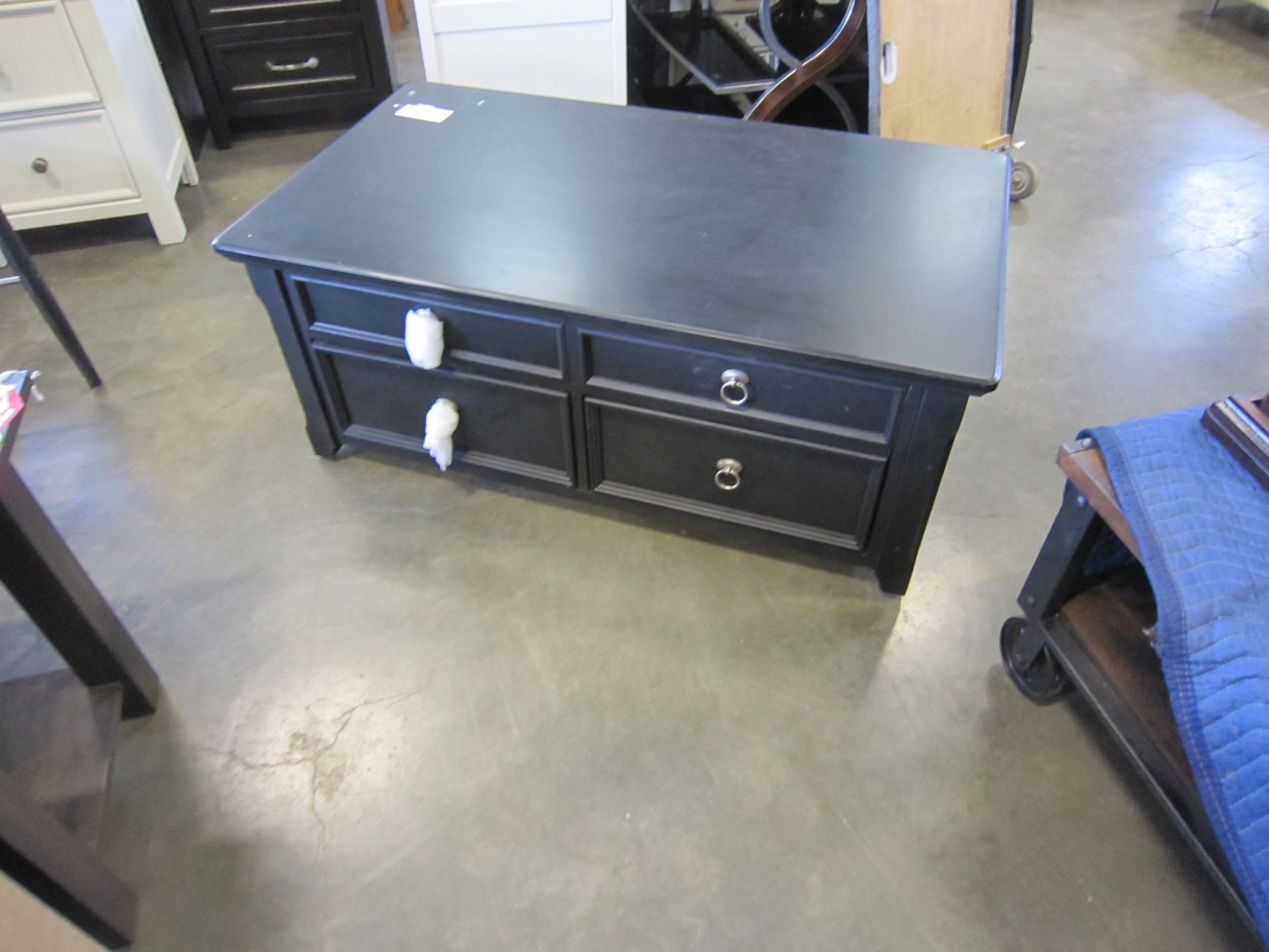 ASHLEY FLOOR MODEL BLACK ROLLING LIFT TOP COCKTAIL TABLE, RETAIL $799