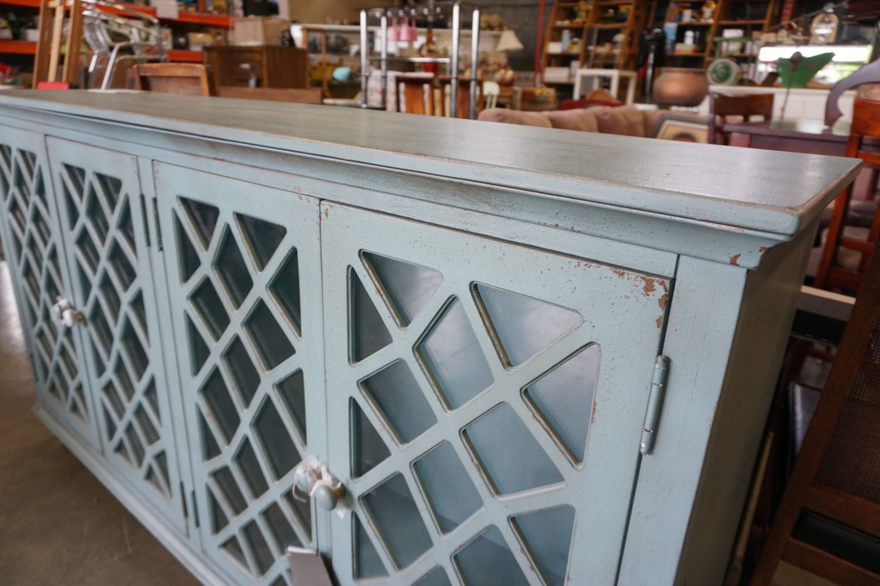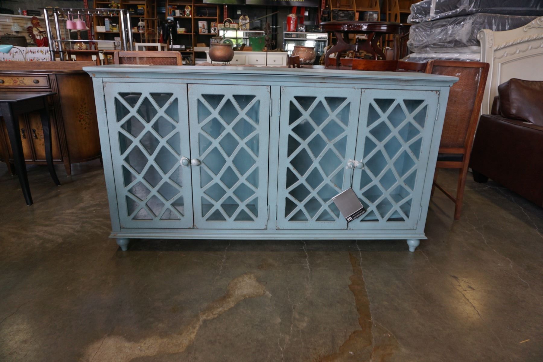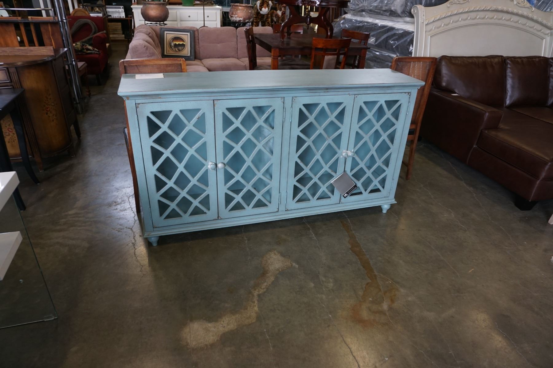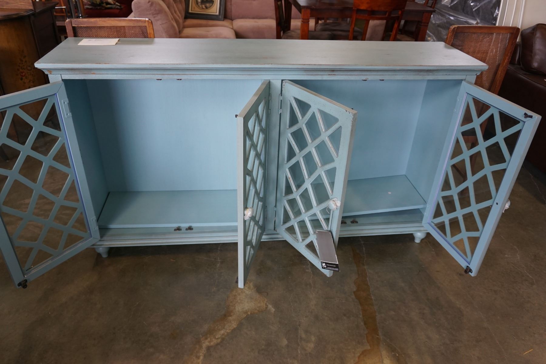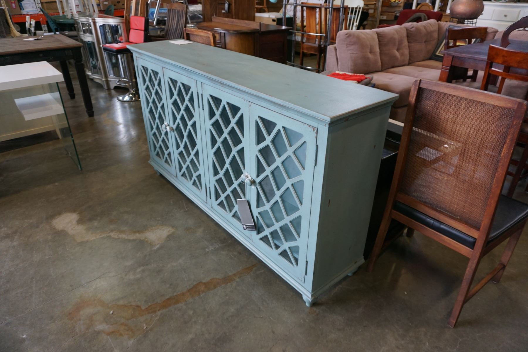 ASHLEY FLOOR MODEL CONTEMPORARY GLASS DOOR ACCENT CABINET, RETAIL $1,599