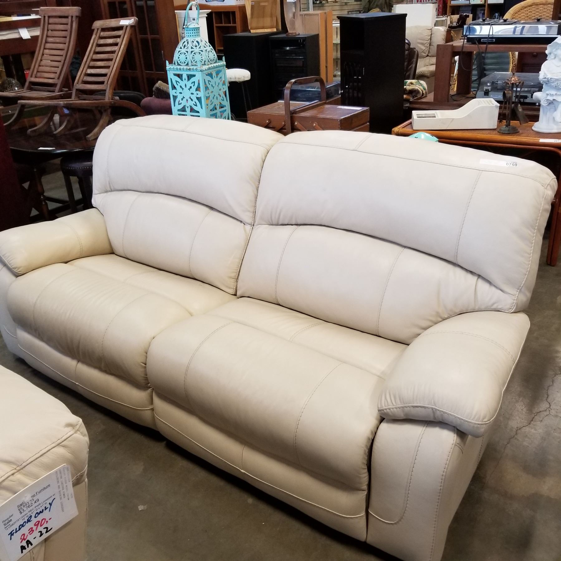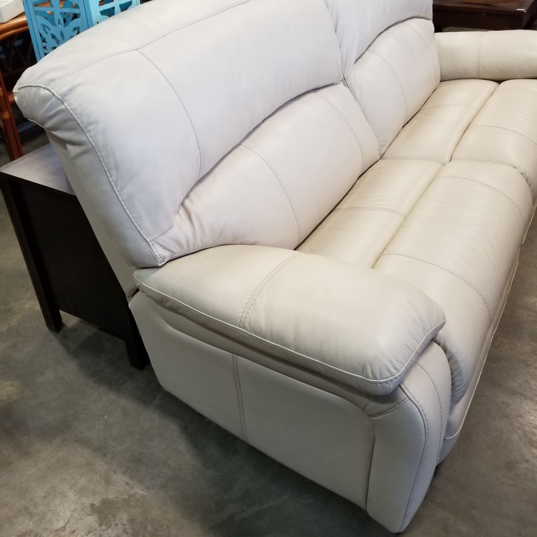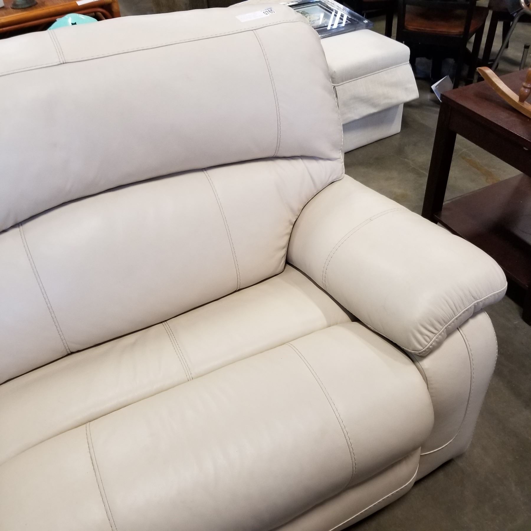 ASHLEY FLOOR MODEL CREAM GENUINE LEATHER POWER RECLINING SOFA, RETAIL $2349