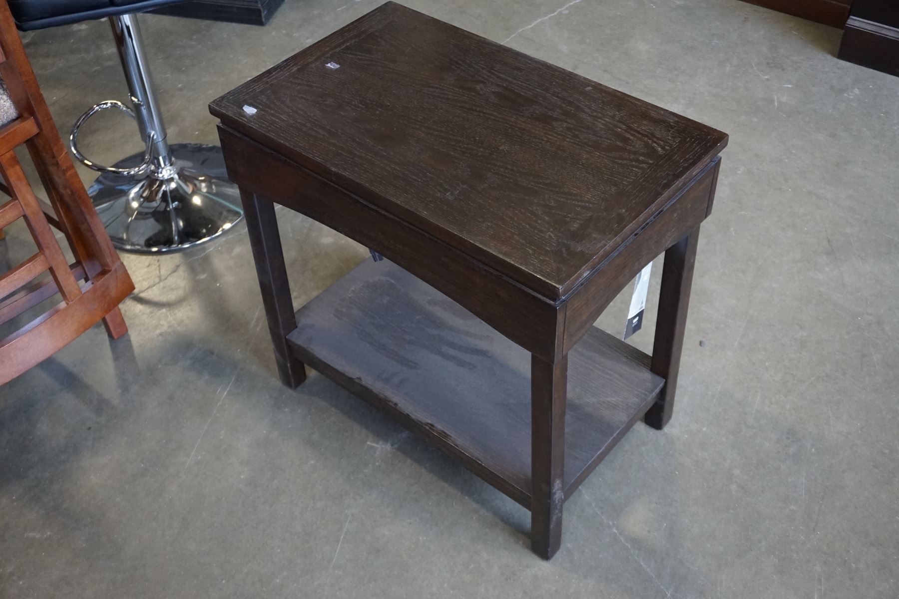 ASHLEY FLOOR MODEL DARK CHAIR SIDE ENDTABLE WITH POWER/USB OUTLETS, RETAIL $499