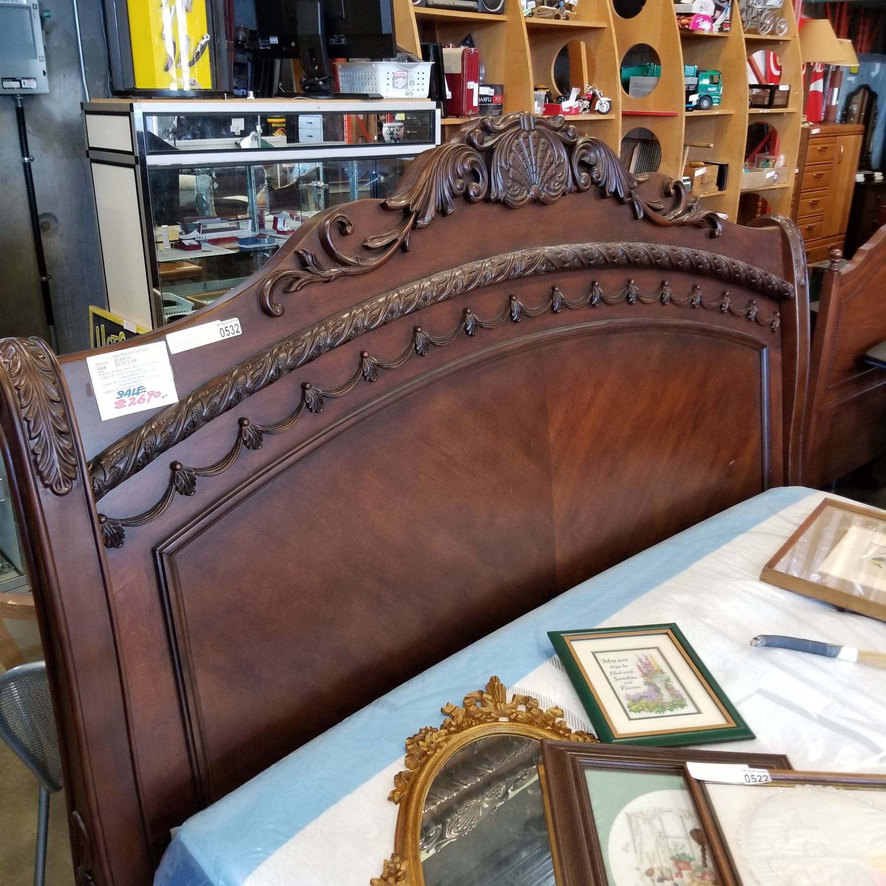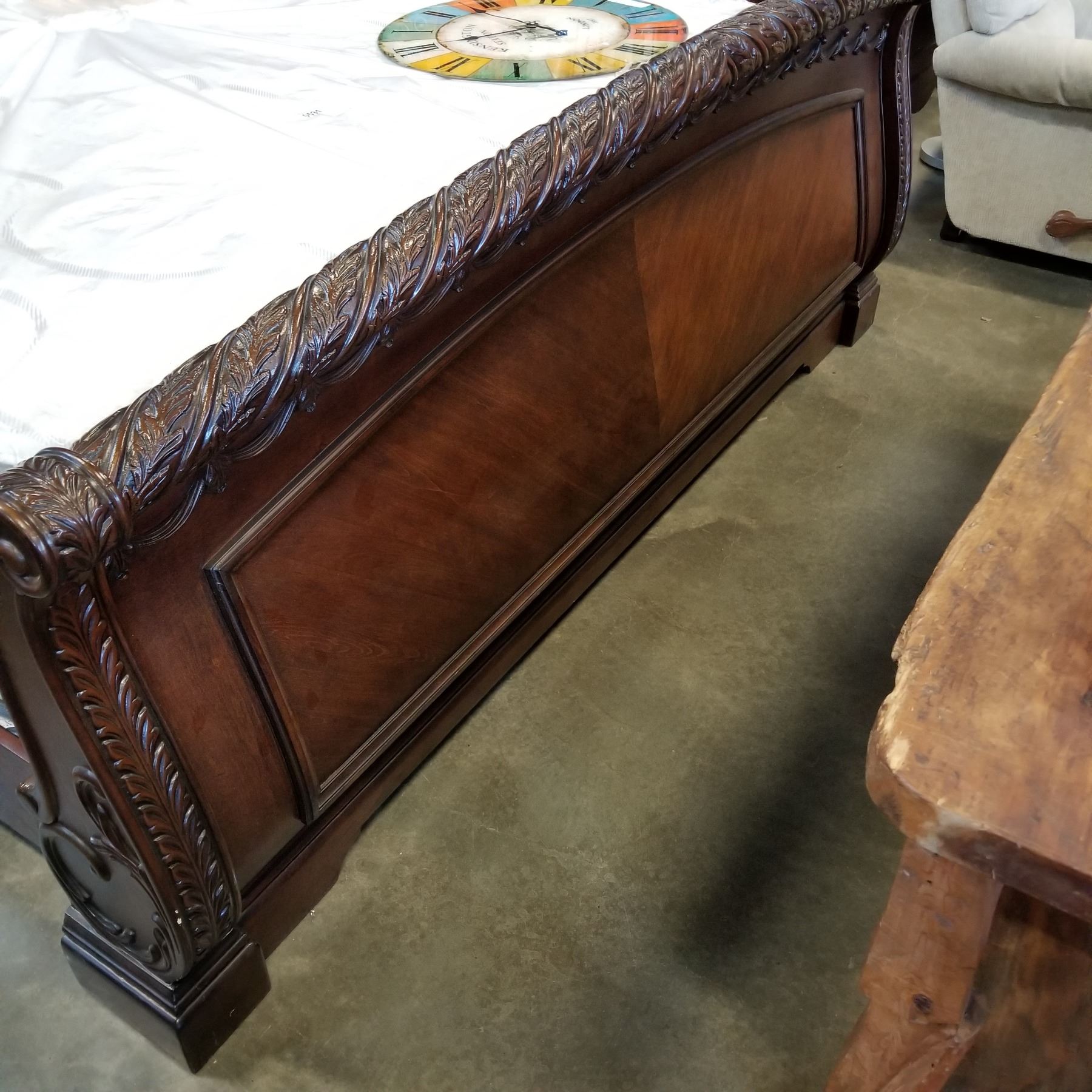 ASHLEY FLOOR MODEL KING SIZE CARVED SLEIGH HEAD BOARD/FOOTBOARD ONLY - NO RAILS