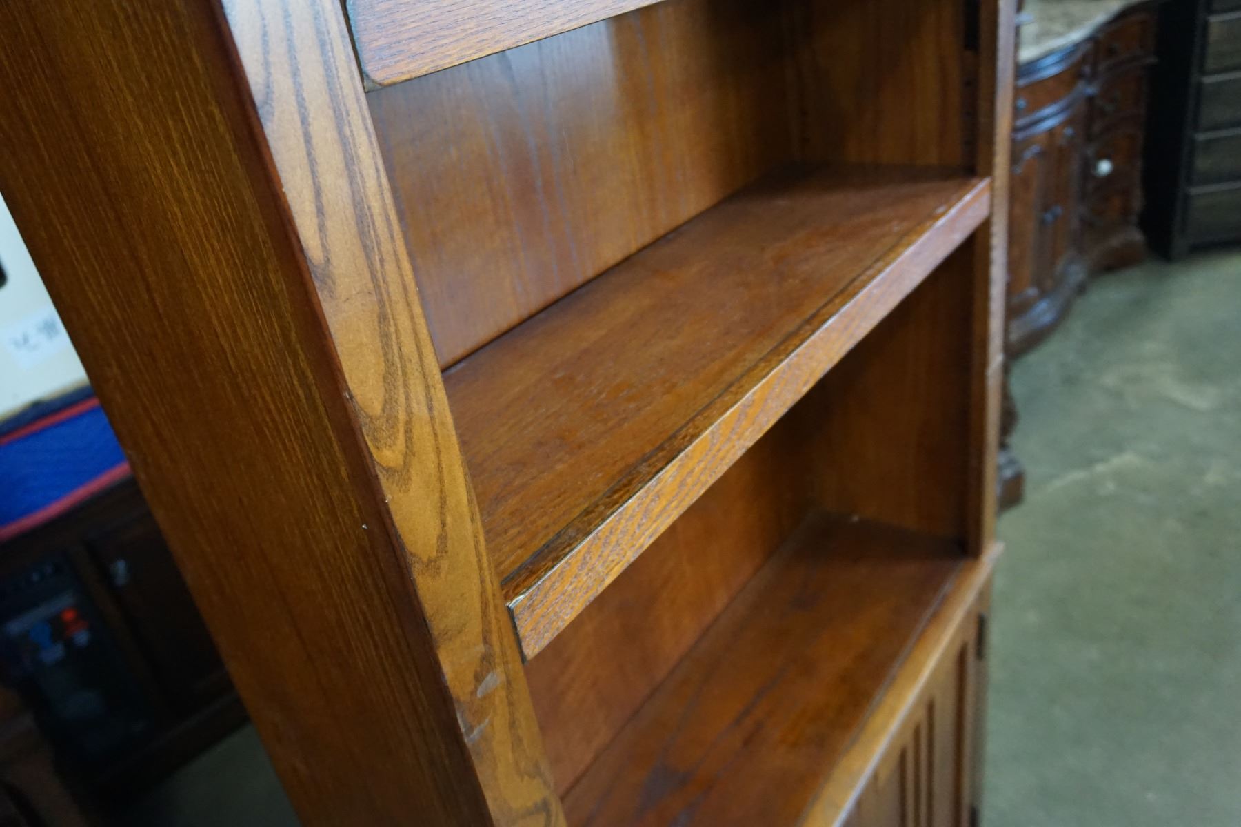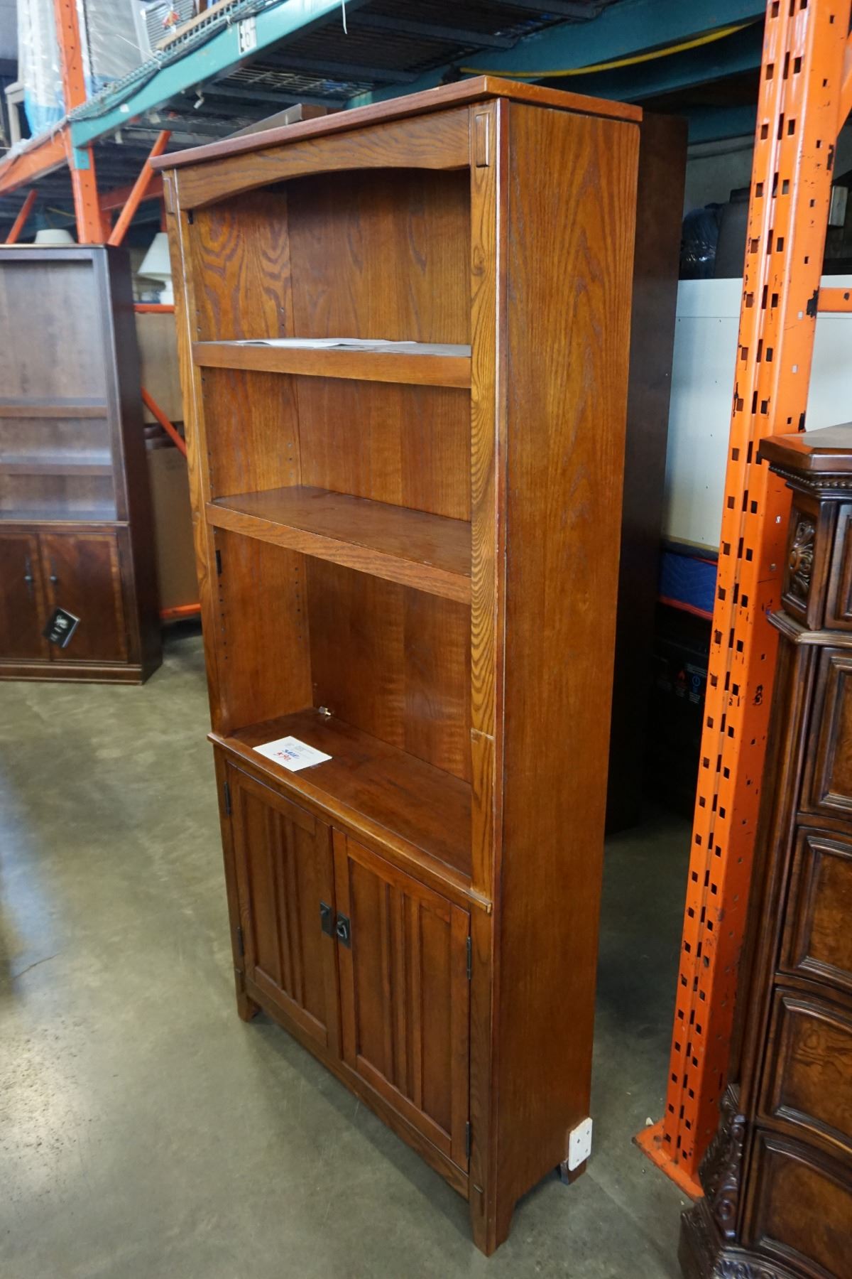 ASHLEY FLOOR MODEL MISSION OAK STYLE 6 FOOT BOOKSHELF, RETAIL $599