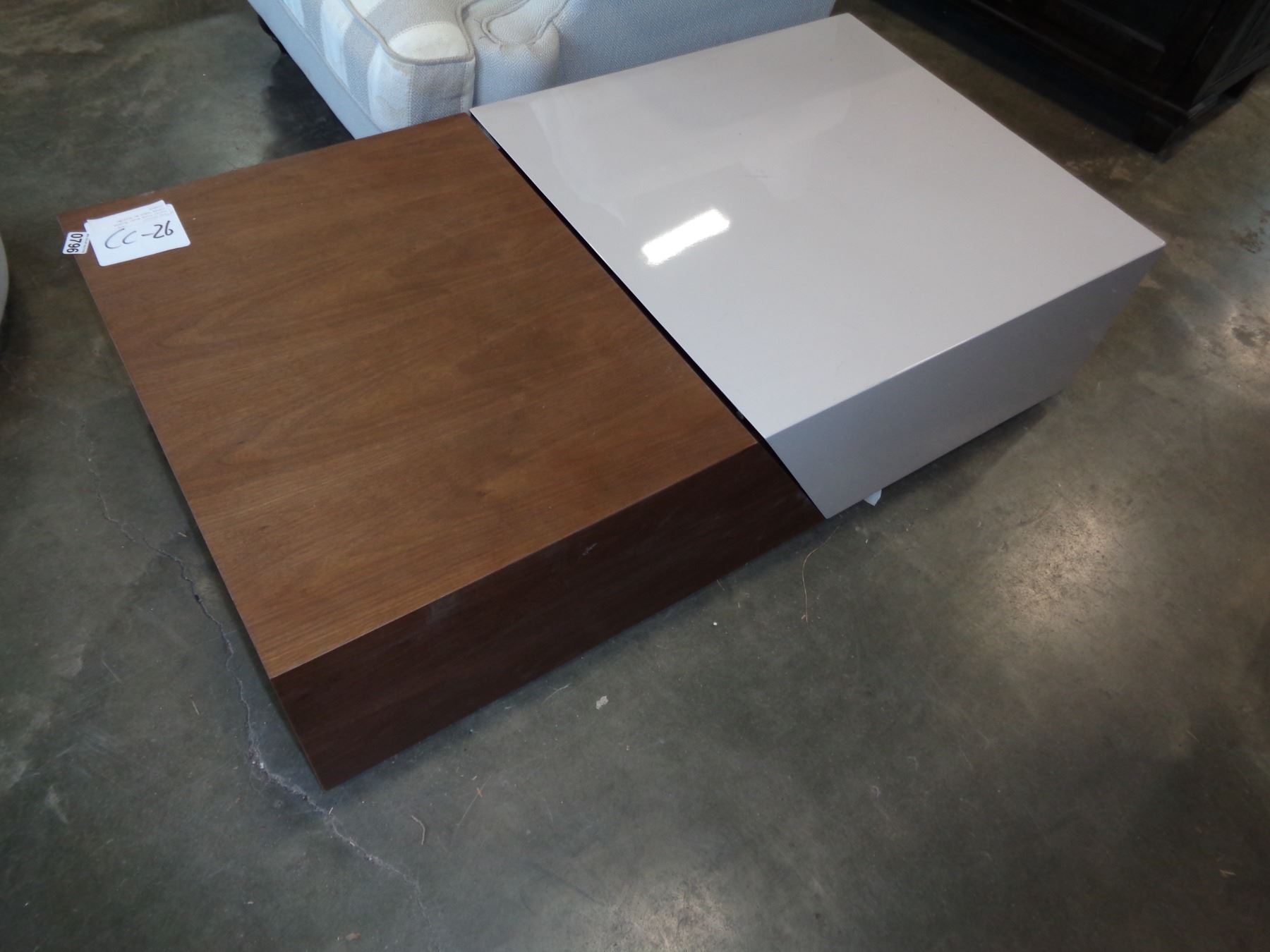ASHLEY FLOOR MODEL MODERN COFFEE TABLE W/ SLIDING STORAGE