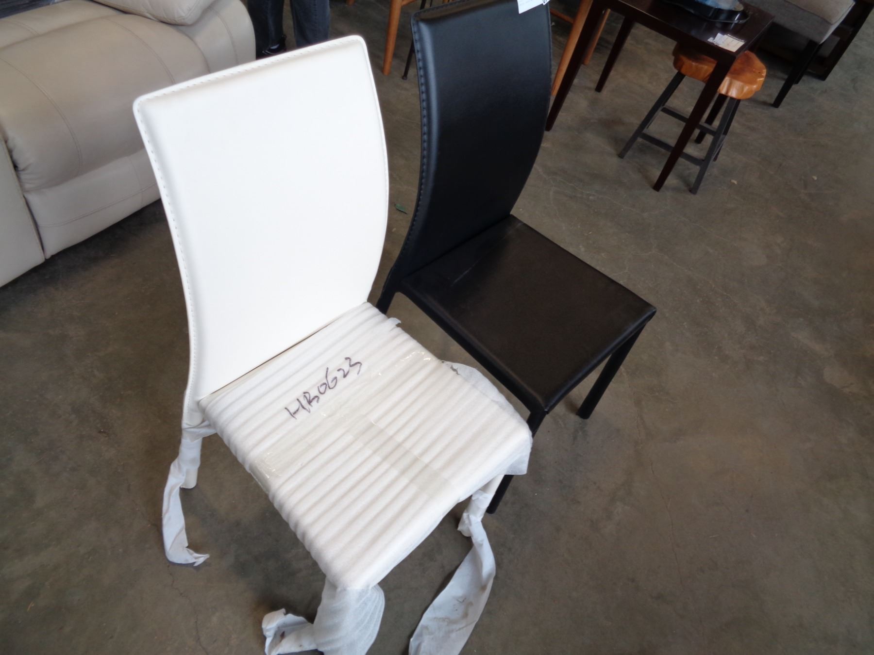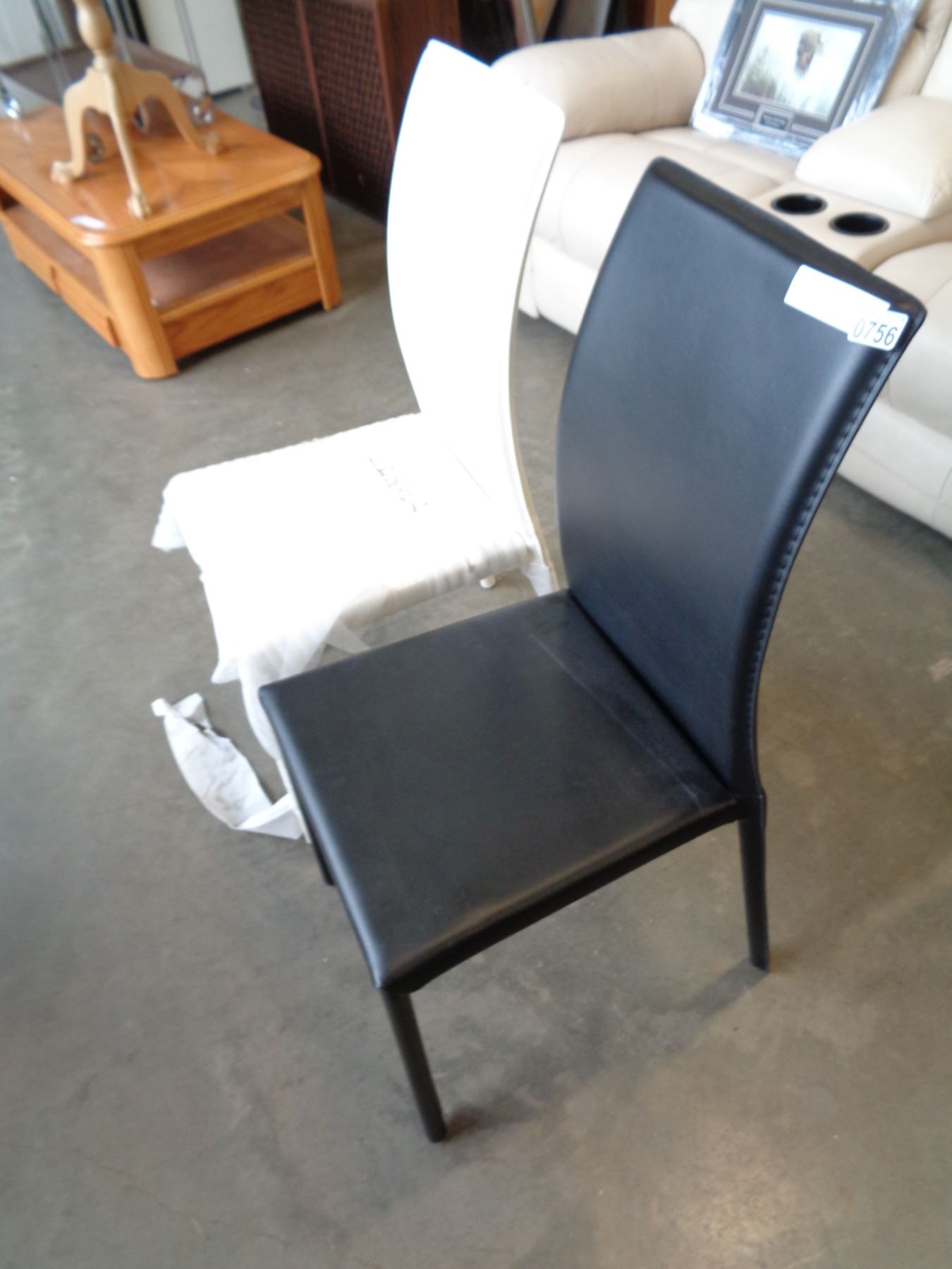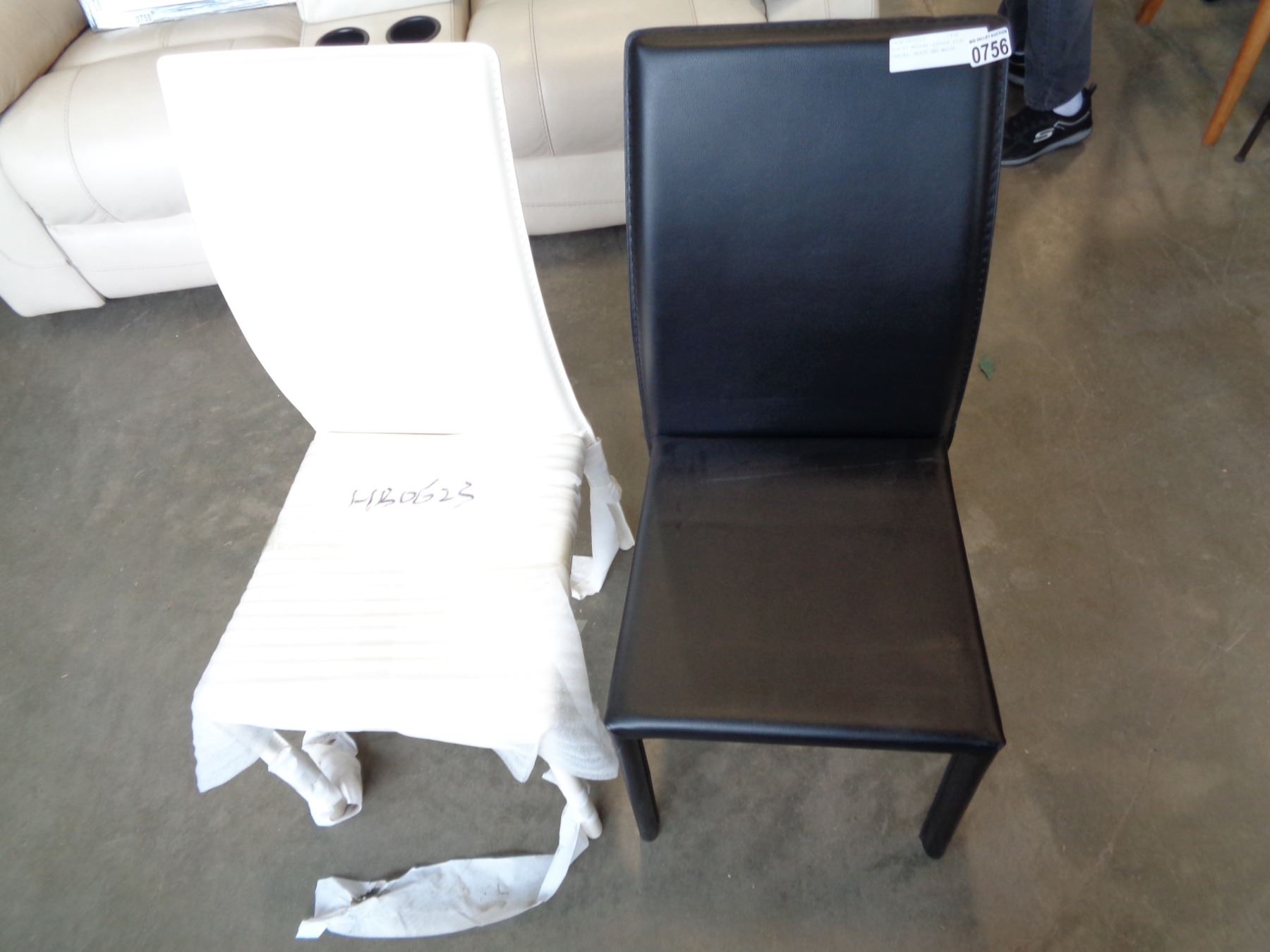 ASHLEY MODERN LEATHER SIDE CHAIRS, BLACK AND WHITE