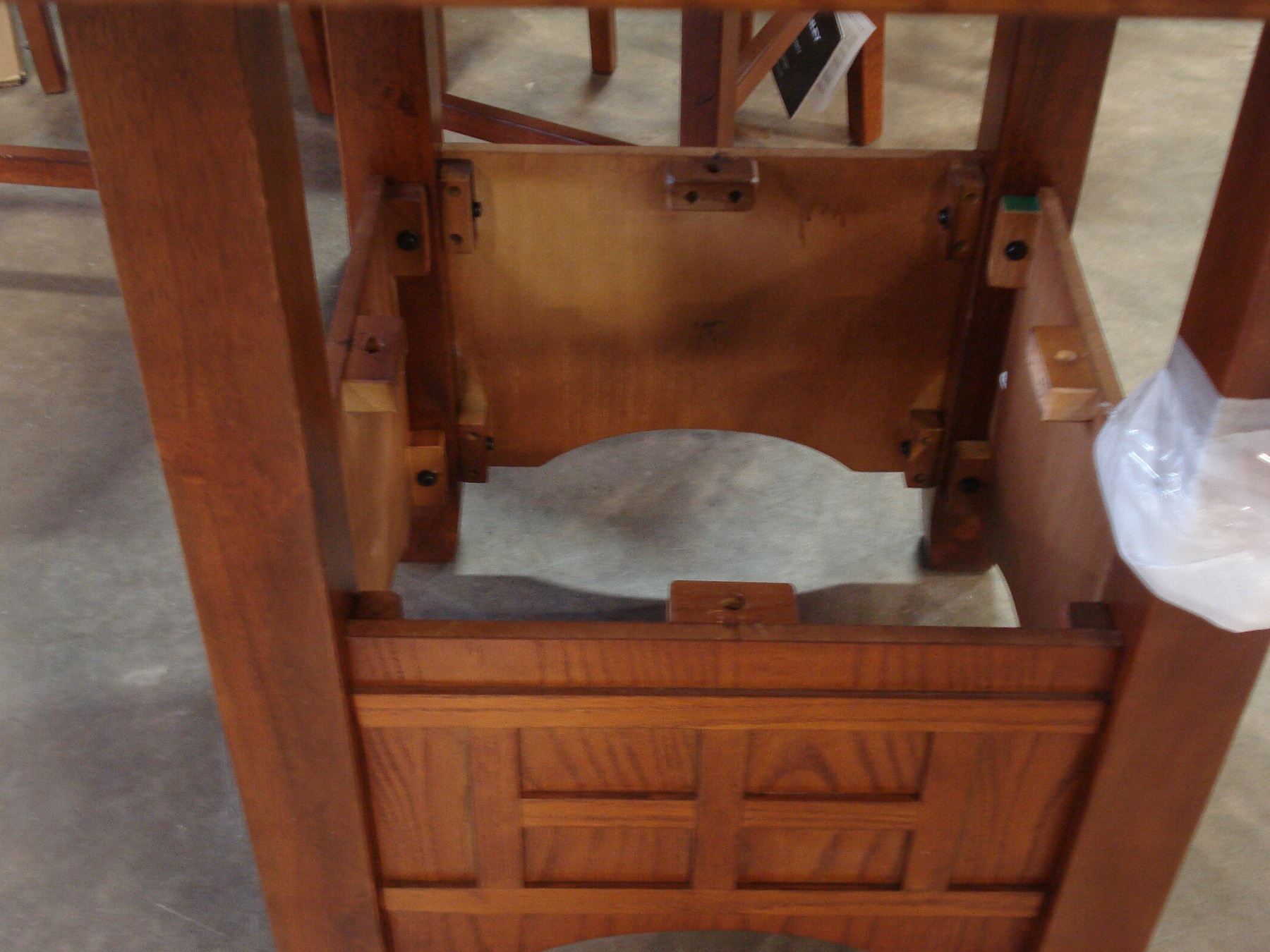 ASHLEY OAK BAR HEIGHT DINING TABLE WITH EXTENSION, AND 4 UPHOLSTERED STOOLS, RETAIL $2699